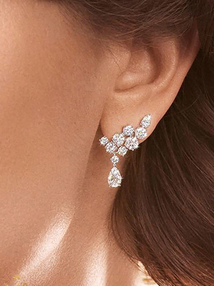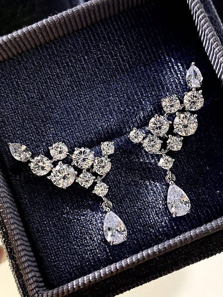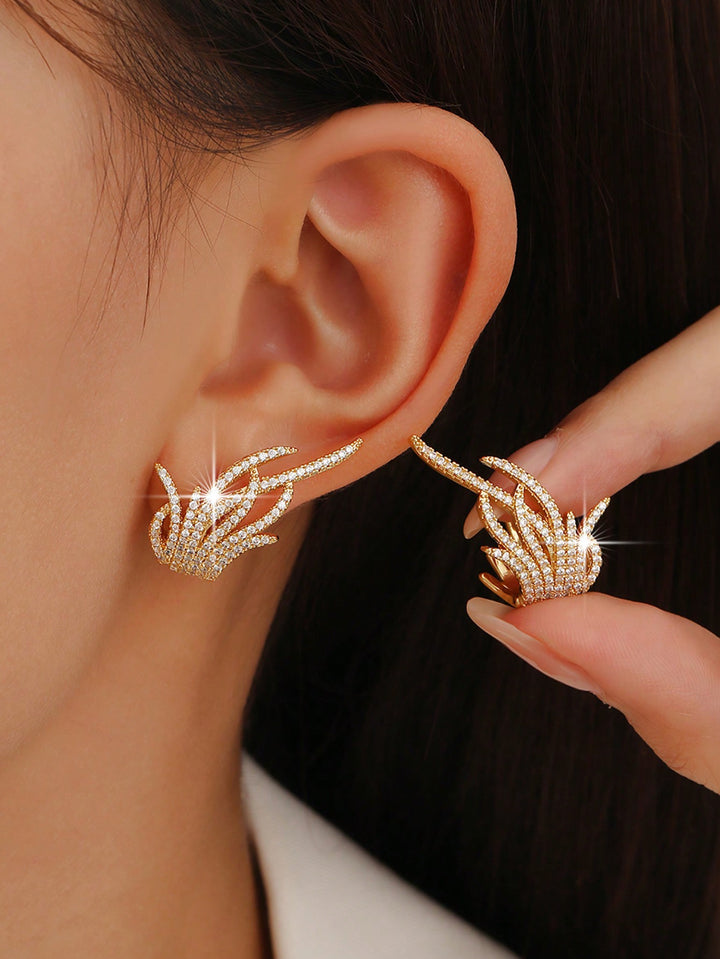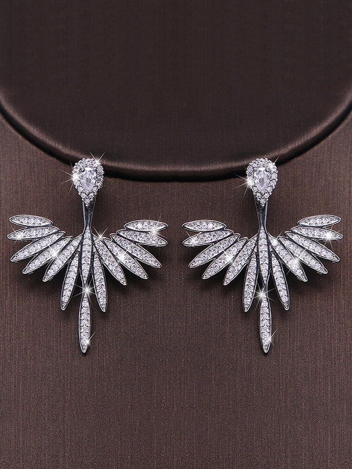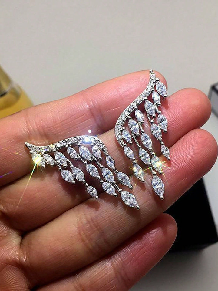 Shein - 1 pair Angle Wing Shape CZ Dangle Earrings for Women Girl Luxury Party Wedding Earrings Gift