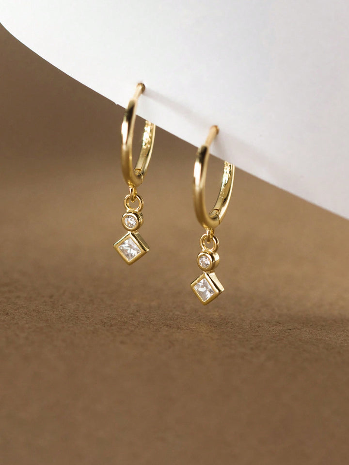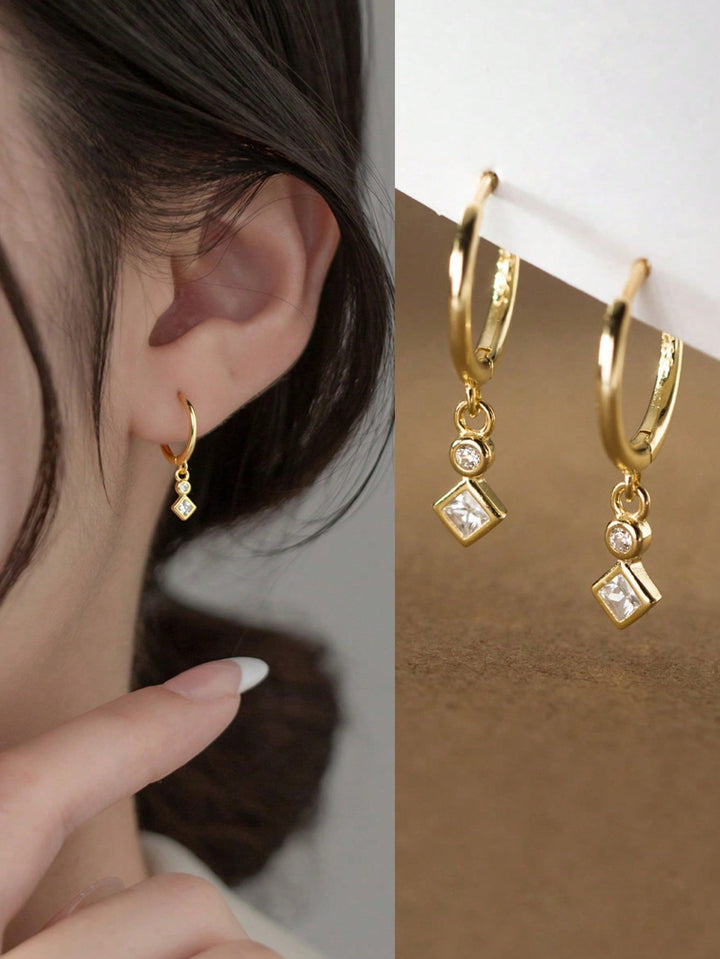 Shein Exclusive - 1 Pair Elegant S925 Sterling Silver Square Earrings Ear Buckle For Women Girl Party Dating Gift Daily Wear Wedding Engagement Bridal Jewelry