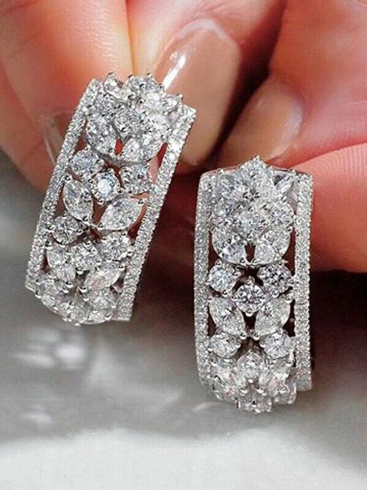 Shein - 1 Pair Glamorous Cubic Zirconia Stud Earrings For Women For Wedding Engagement Anniversary Party Jewelry Valentine's Day Gift