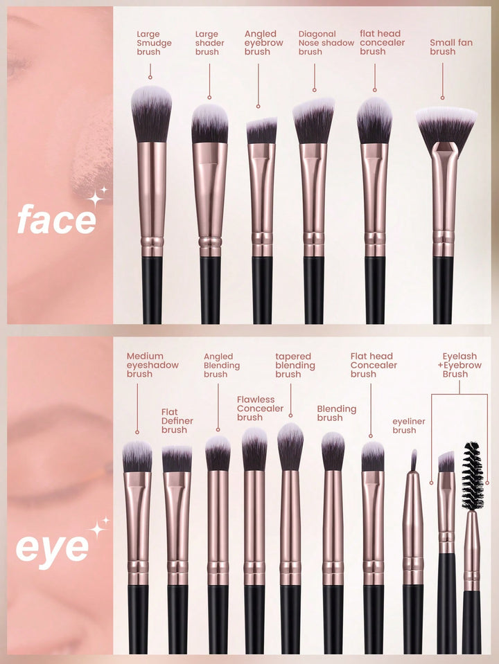 Shein - 15pcs makeup brush sets Premium Synthetic hair Eyeshadow Blending brush sets cosmetics tools for face and eyes Black Friday