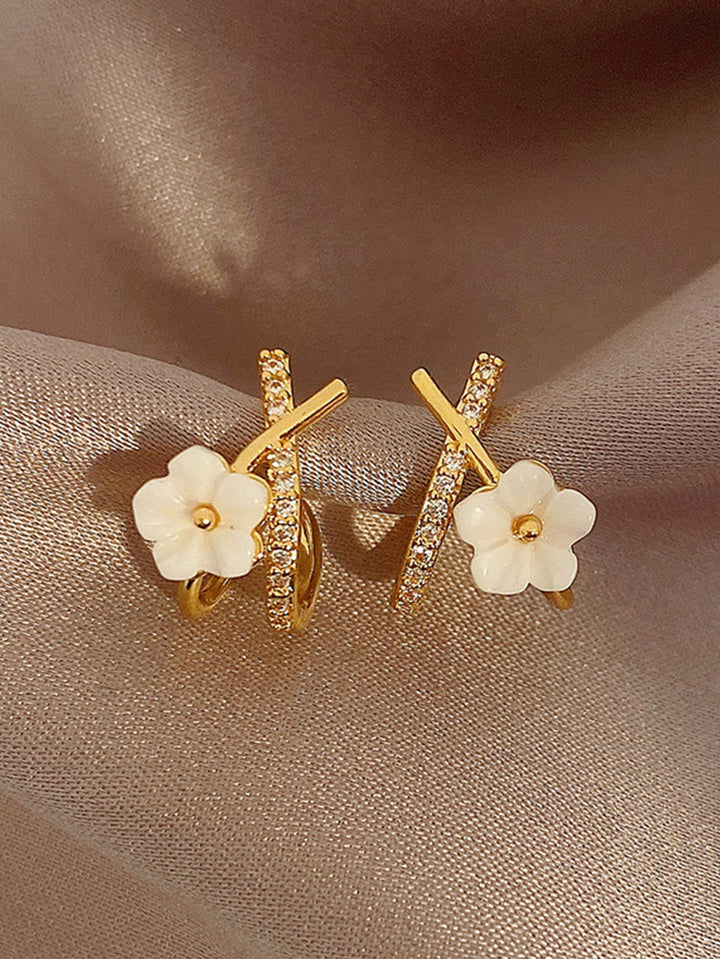 Shein - 1Pair Casual Chic & Cross Design Seashell & Floral Dangle Earrings For Women, Suitable For Daily Wear