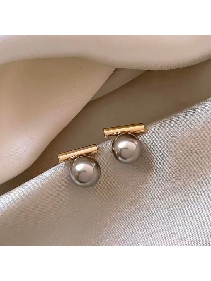 Shein - 1pair Copper Imitation Pearl Grey Color Women's Light Luxury Elegant Versatile Stud Earrings