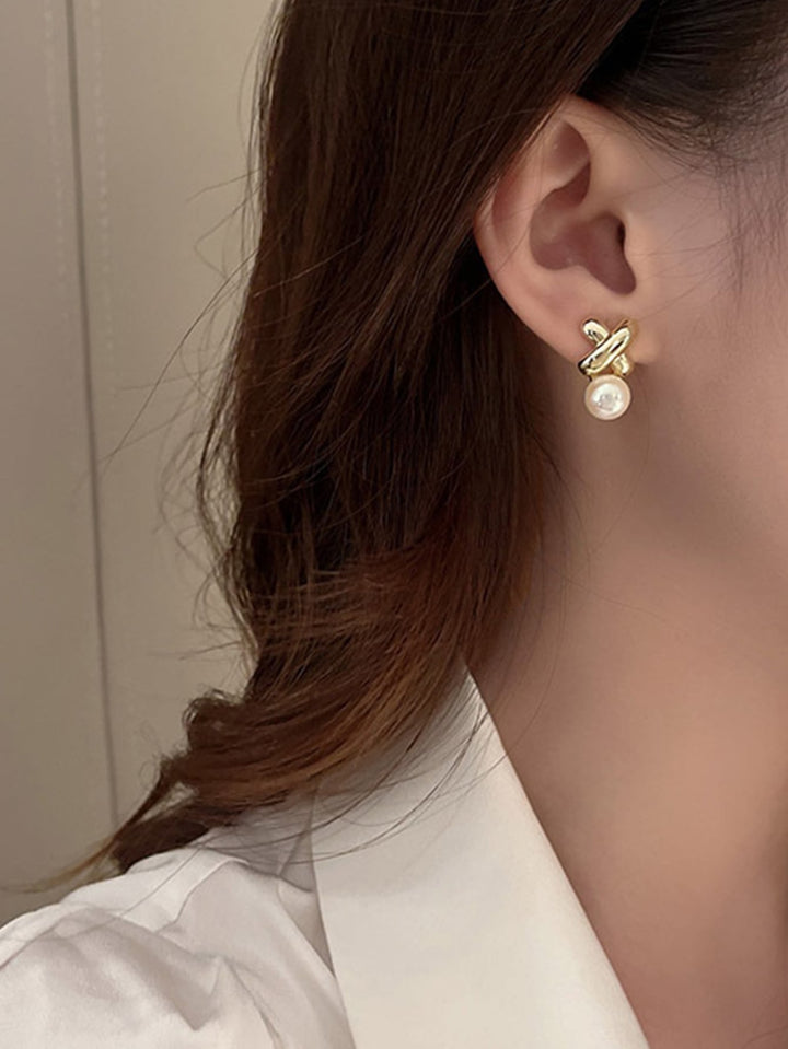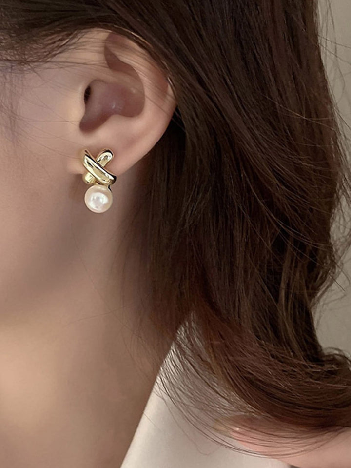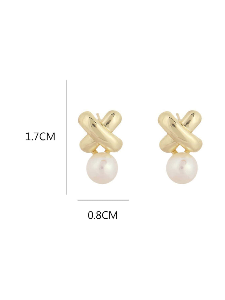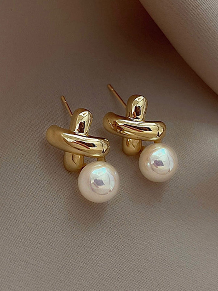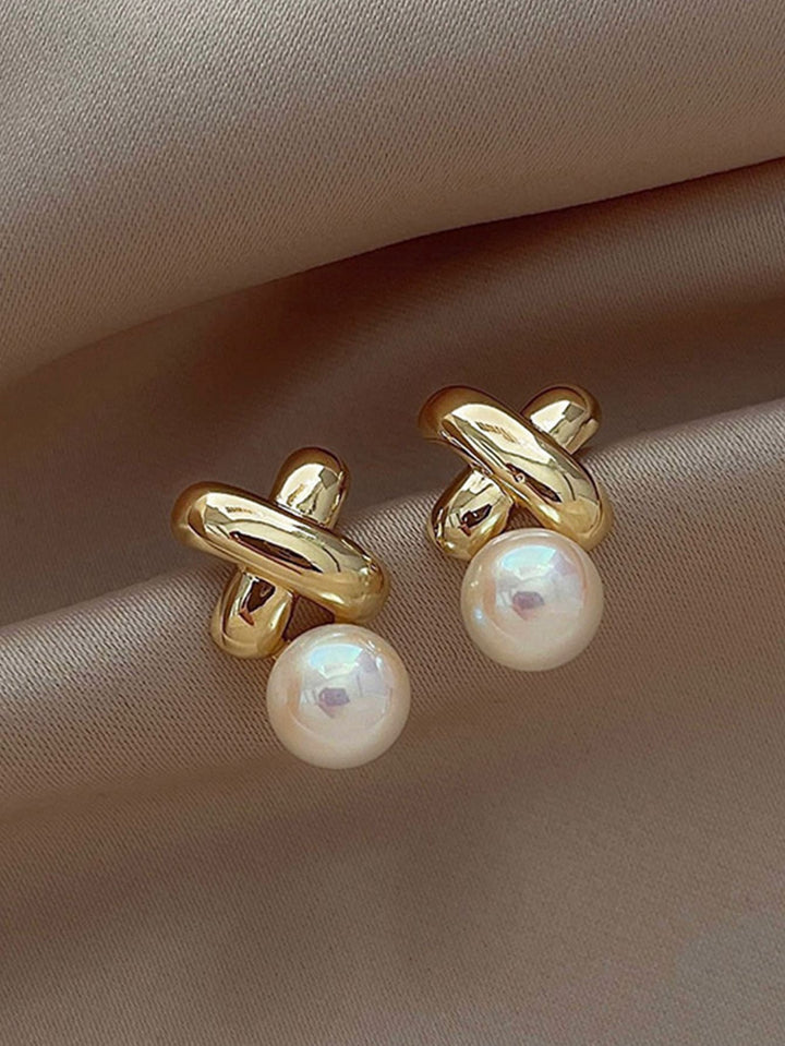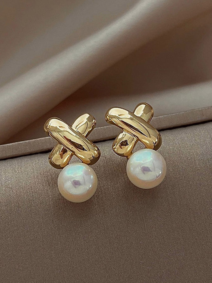 Shein - 1pair Elegant And Luxurious Vintage Cross Pearl Earrings, Suitable For Women's Daily Wear