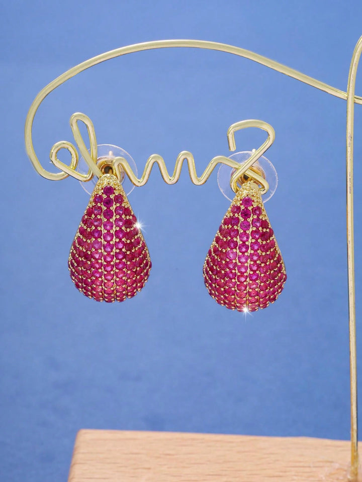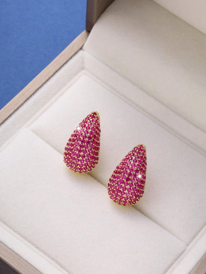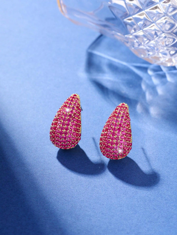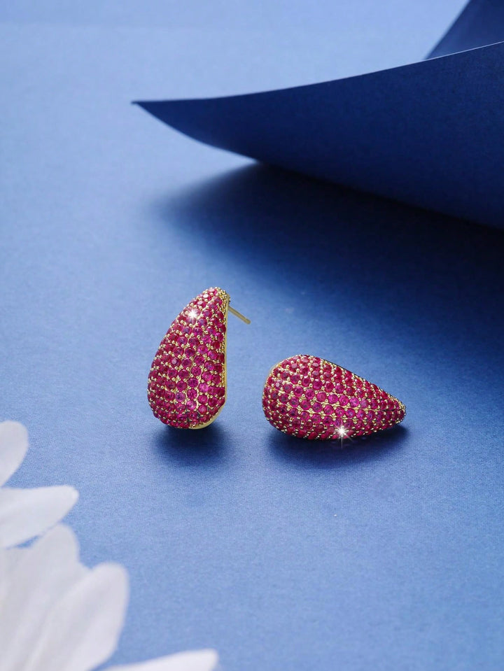 Shein - 1pair Elegant & Luxurious Drop Shaped Stud Earrings For Women, Great For Date And Graduation Gift