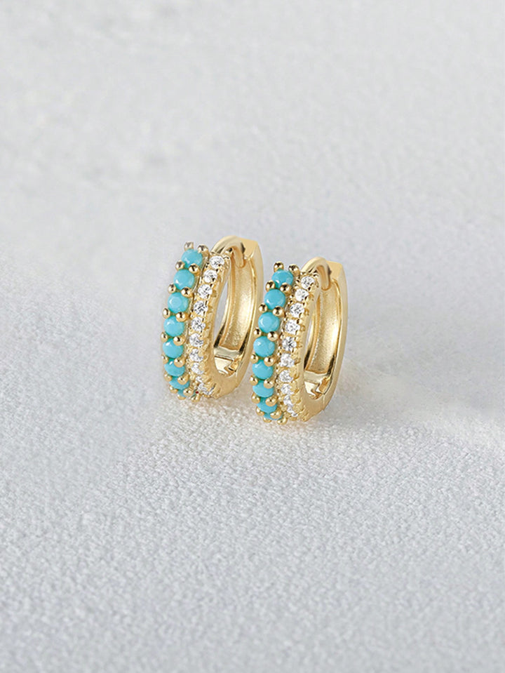 Shein - 1pair European And American Fashion Simple Personality Double-Row Mixed-Color Diamond Inlaid Silver Hoop Earrings