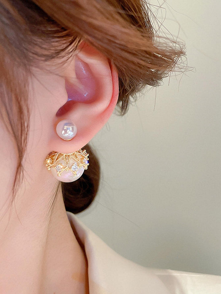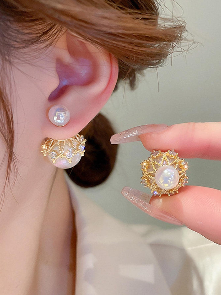 Shein - 1pair Fashion Cubic Zirconia & Faux Pearl Decor Earring Jackets For Women For Gift