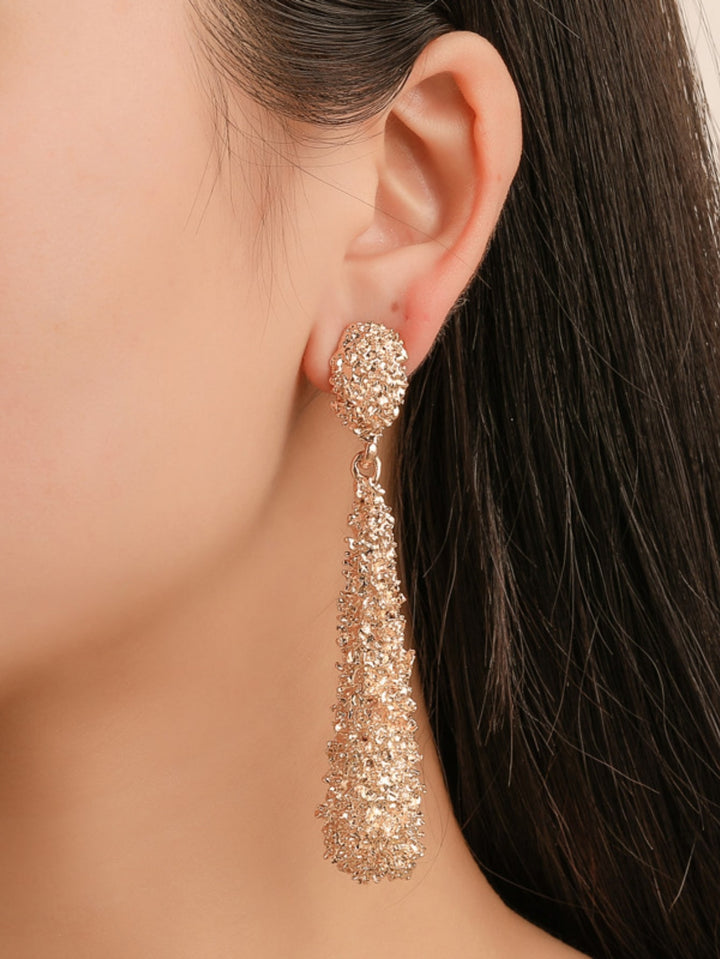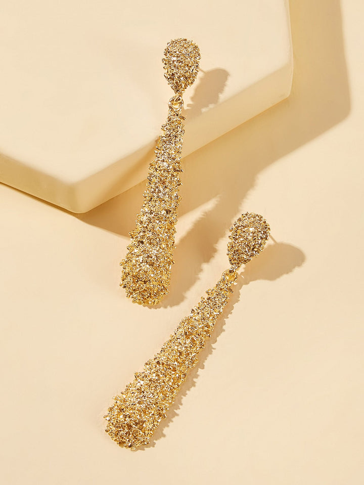 Shein - 1pair Fashionable Frosted Geometric Drop-Shaped Textured Earrings For Women Suitable For Daily, Date, Party Wear, Gift