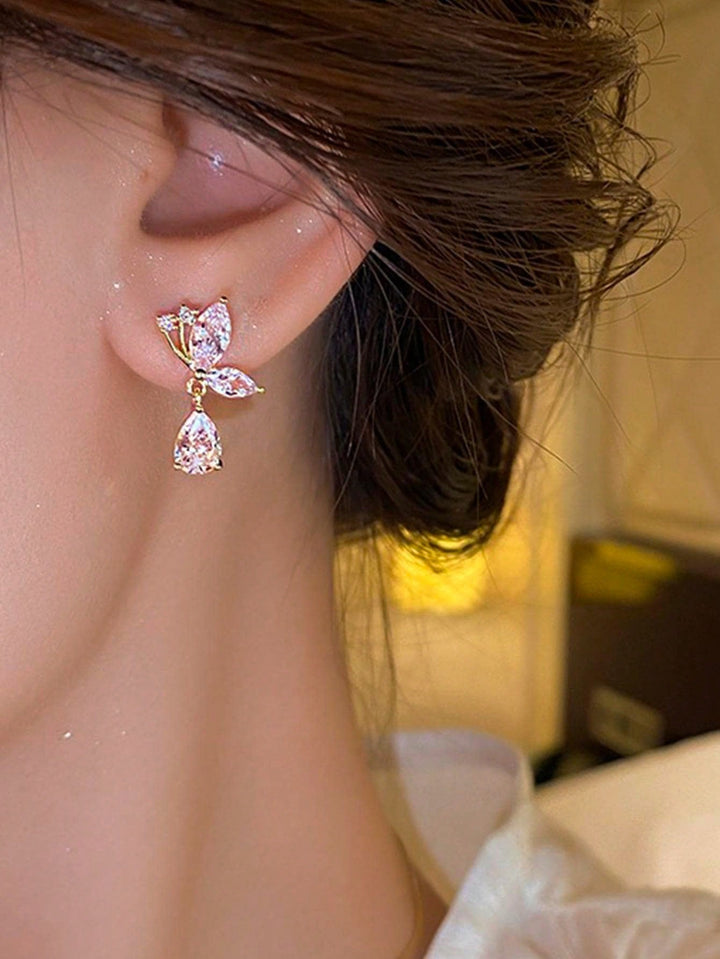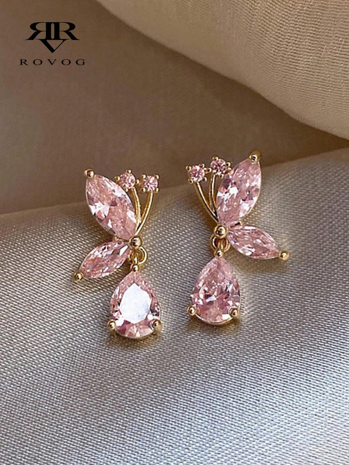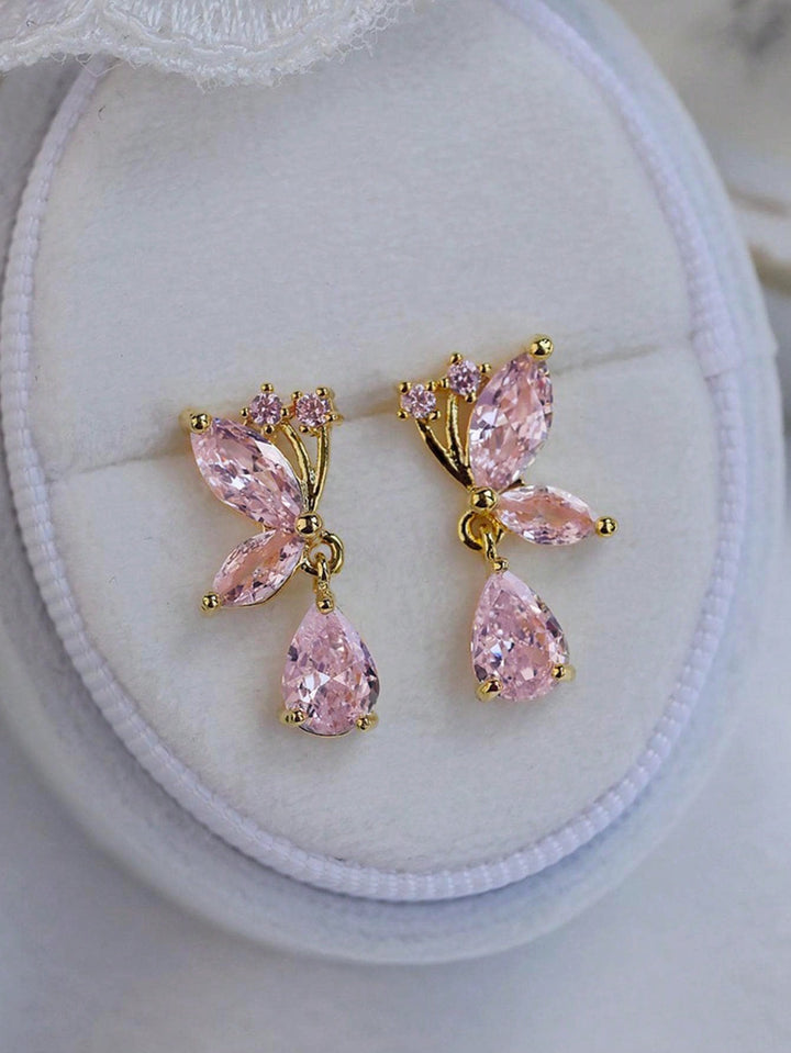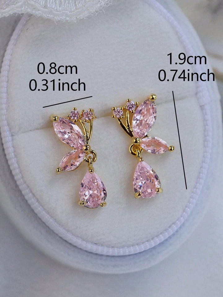 Shein - 1pair Fashionable Personalized Pink Teardrop Butterfly Dangle Earrings For Women