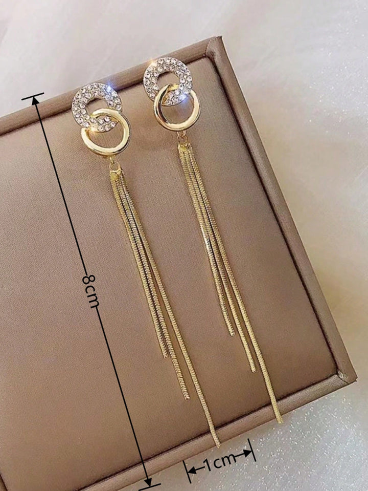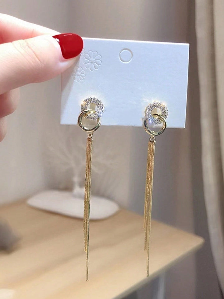 Shein - 1pair Glamorous Rhinestone & Chain Tassel Decor Drop Earrings For Women For Party