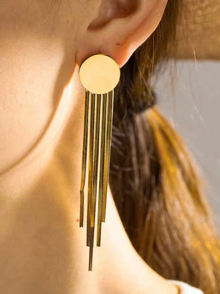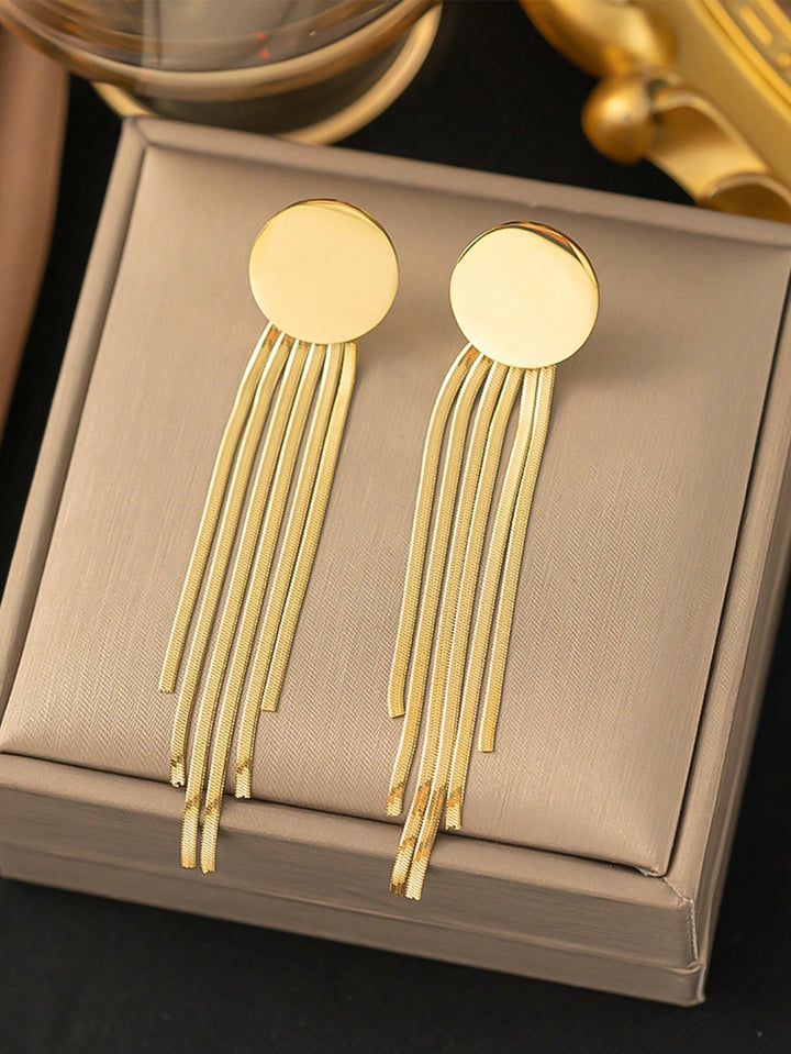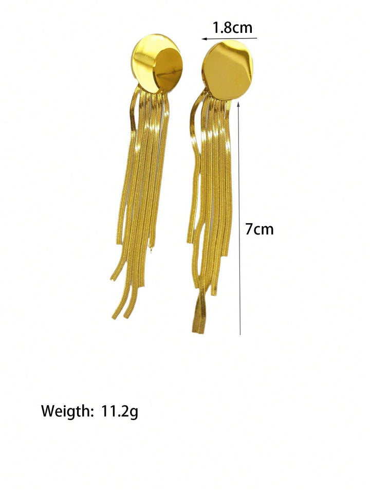 Shein - 1pair Gold-color European And American Style Nightclub Long Personalized Earrings Fashionable And Stylish Atmosphere Earrings Women's Accessories