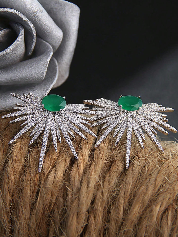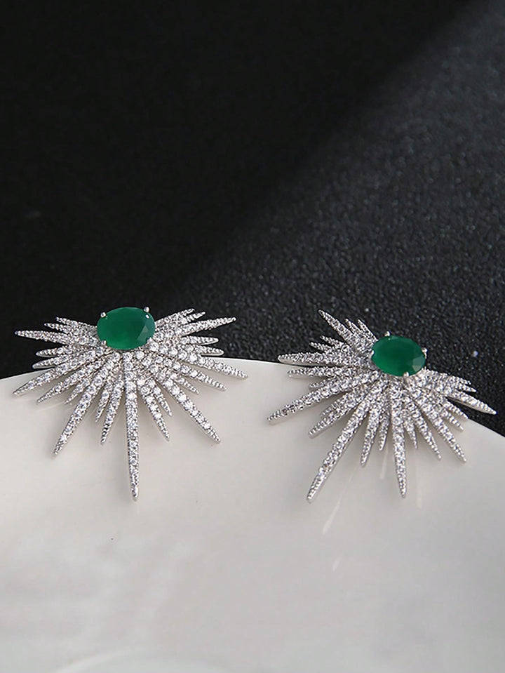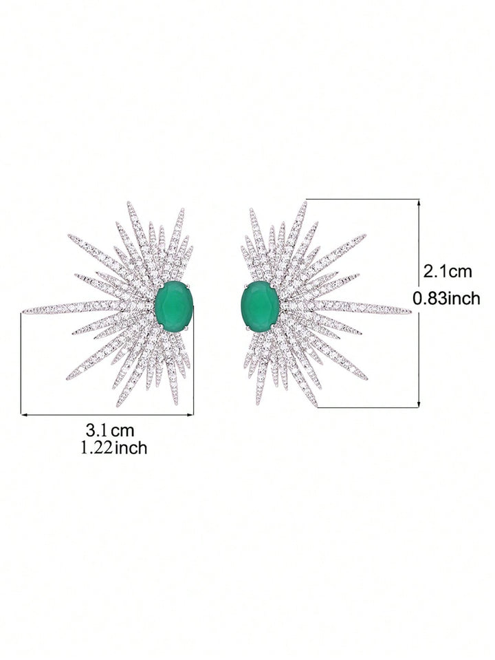 Shein - 1pair Green Cubic Zirconia Marquise Stud earrings for Women Party Wedding Dating Gift