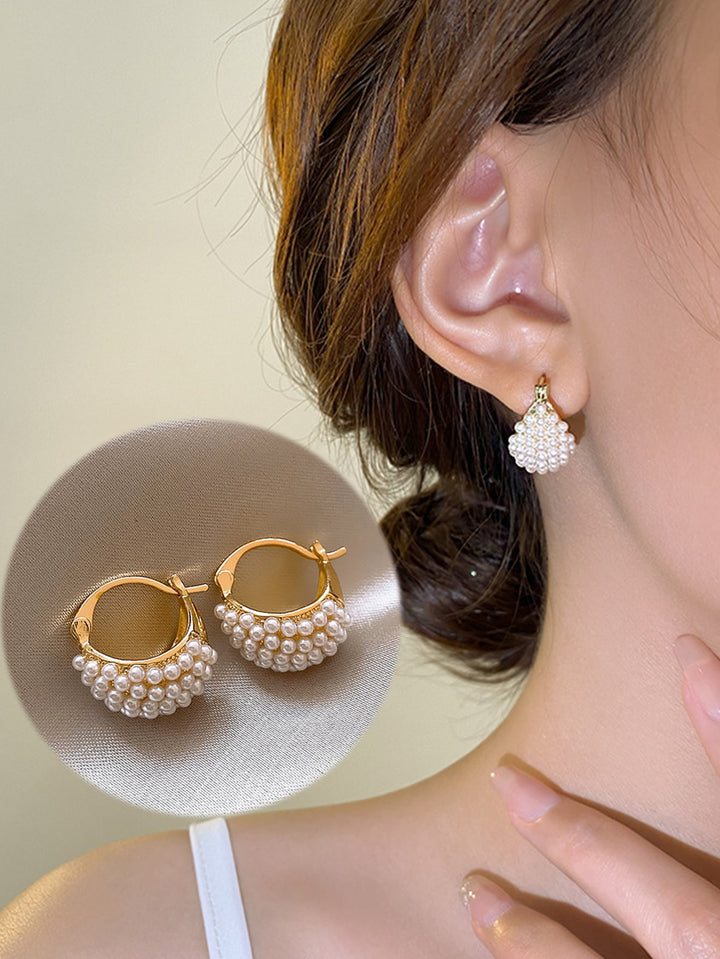 Shein - 1pair New Fashion Faux Pearl Flower Basket Design Simple & Unique Earrings For Women, Versatile Accessory
