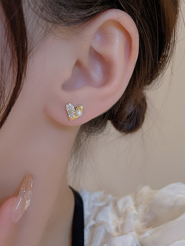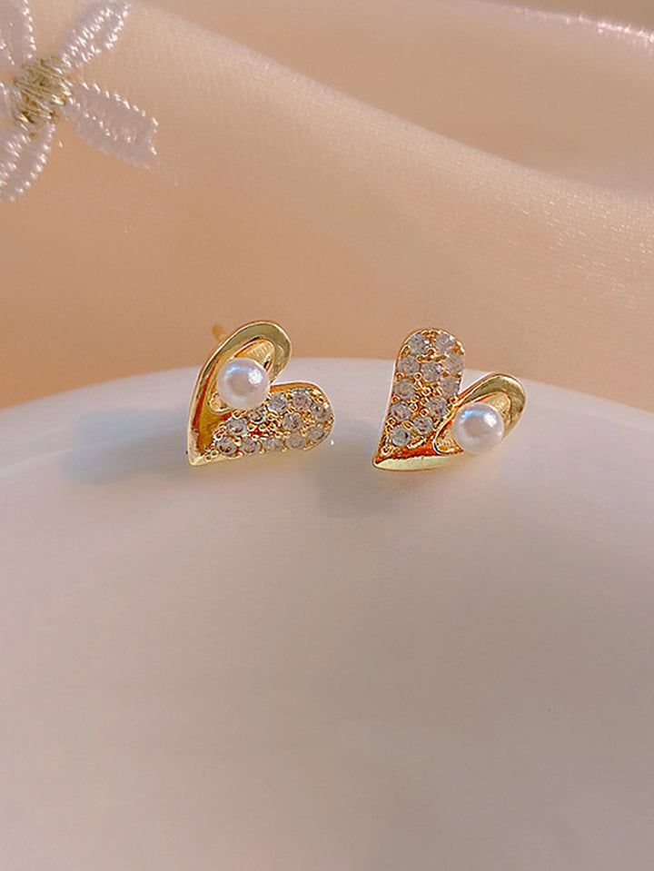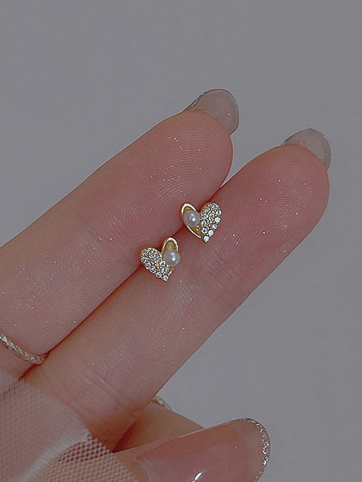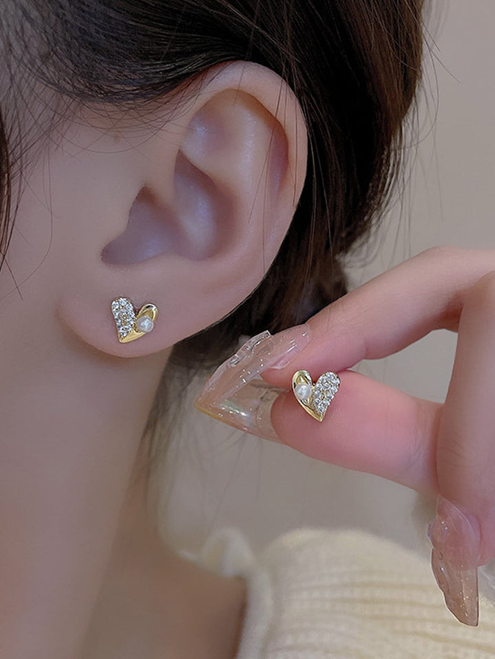Shein - 1pair Versatile Exquisite Miniature Simple Faux Pearl Heart Shaped Stud Earrings