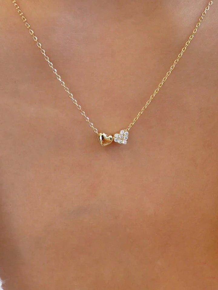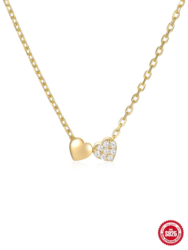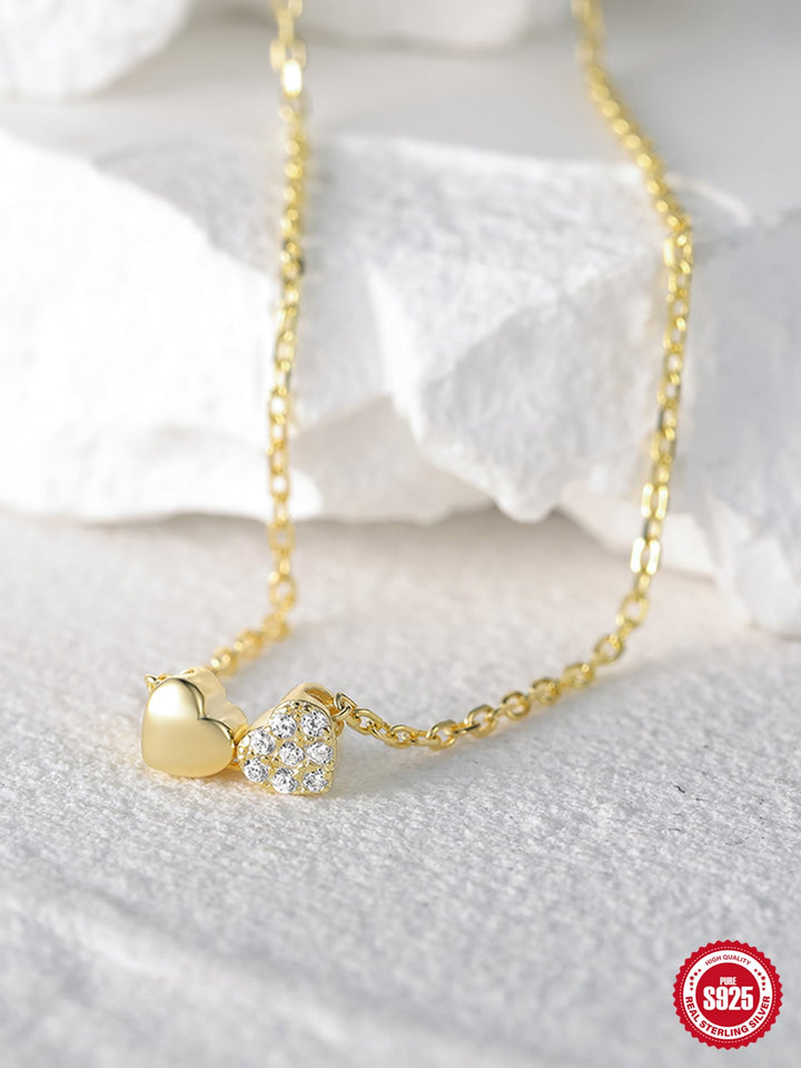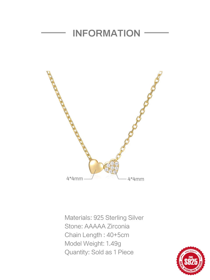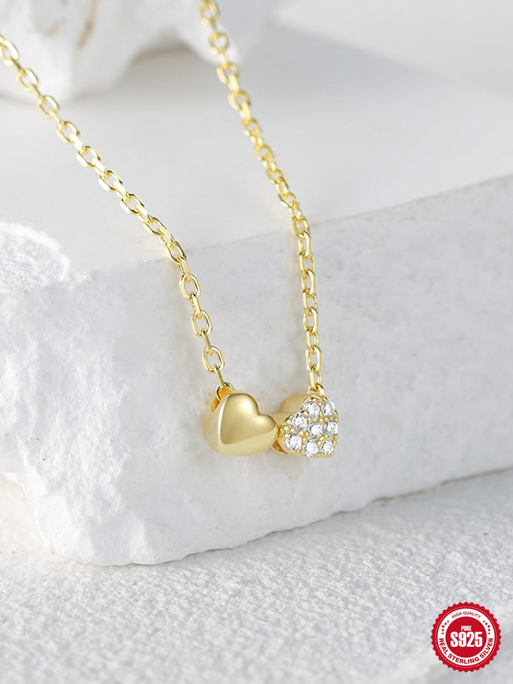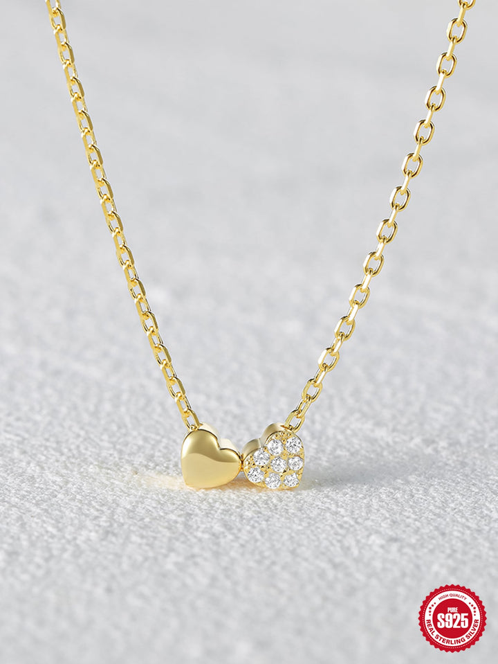 Shein - 1PC 925 Sterling Silver Cubic Zirconia Heart Necklace 18k Gold Plated Cute Dainty Love Pendant Choker Fine Jewelry For Women Daily Wear Wedding Party Engagement Anniversary Valentine'S Day