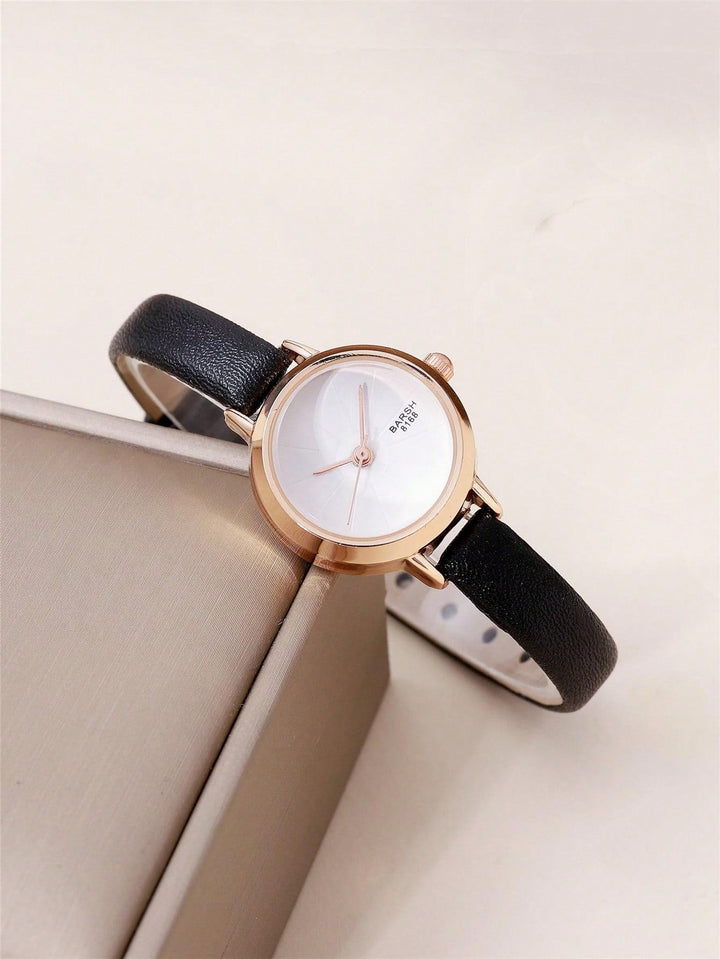 Shein - 1pc Black PU Polyurethane Strap Fashion Round Dial Quartz Watch, For Daily Life