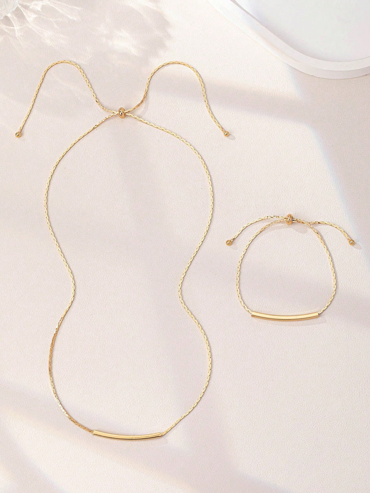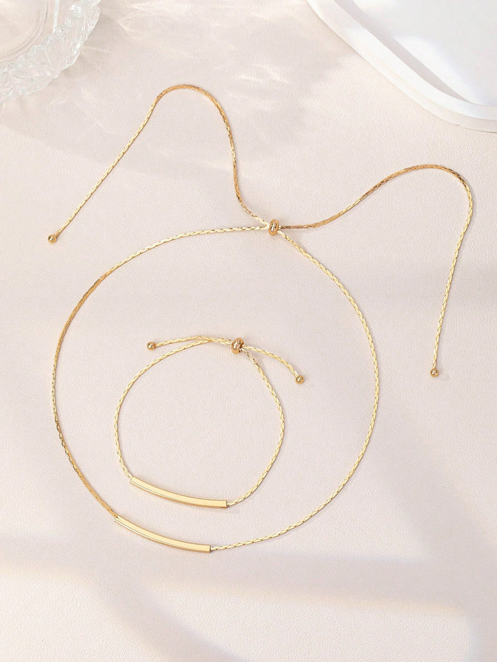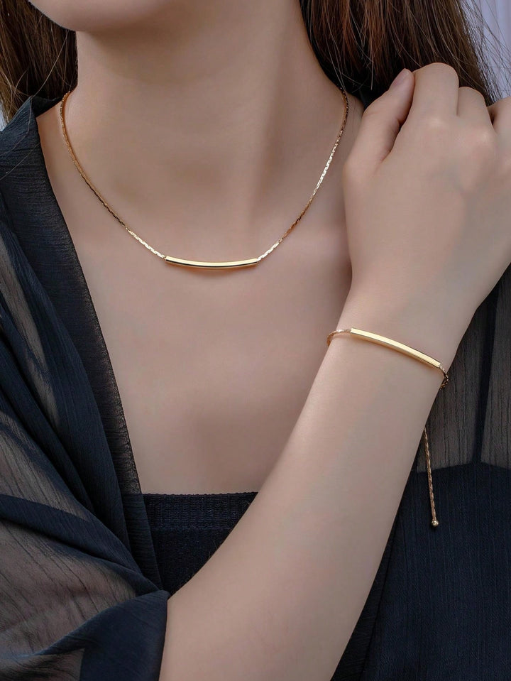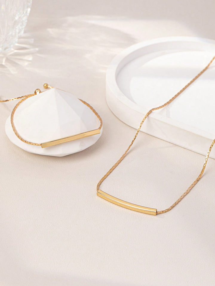 Shein - 1Pc Copper Geometrical Shape Minimalist Necklace, 1Pc Copper Geometrical Shape Minimalist Bracelet