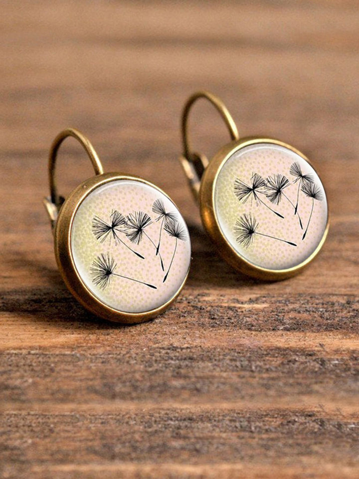 Shein - 1pc Dandelion Pattern Round Earrings Copper Jewelry