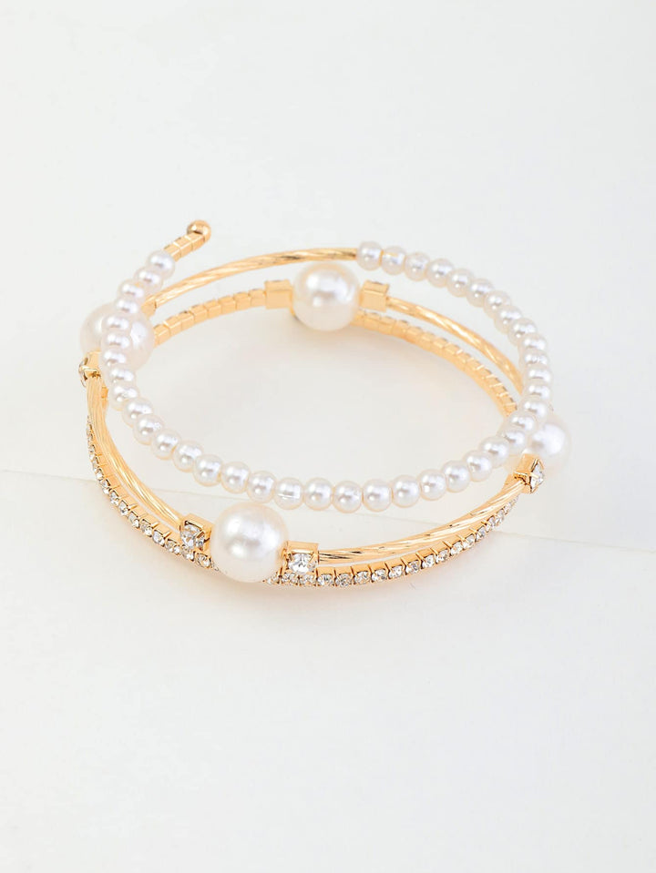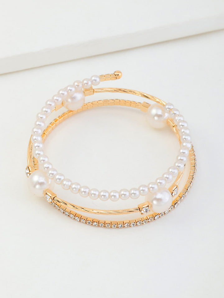 Shein - 1Pc Elegant & Creative Faux Pearl & Rhinestone Decor Bracelet For Women'S Party Accessories