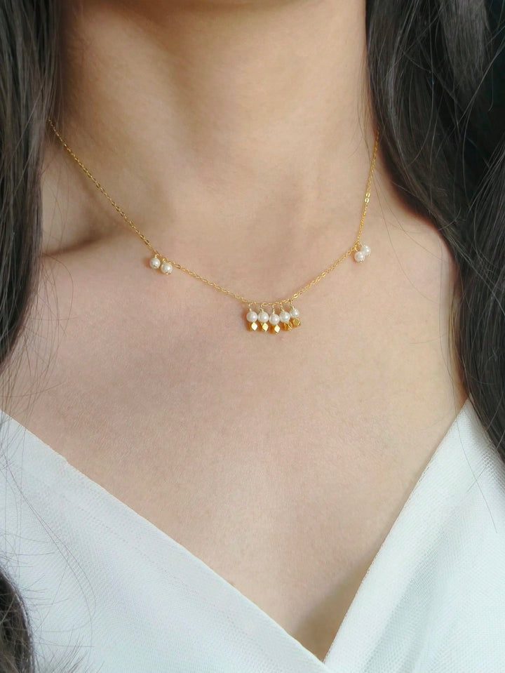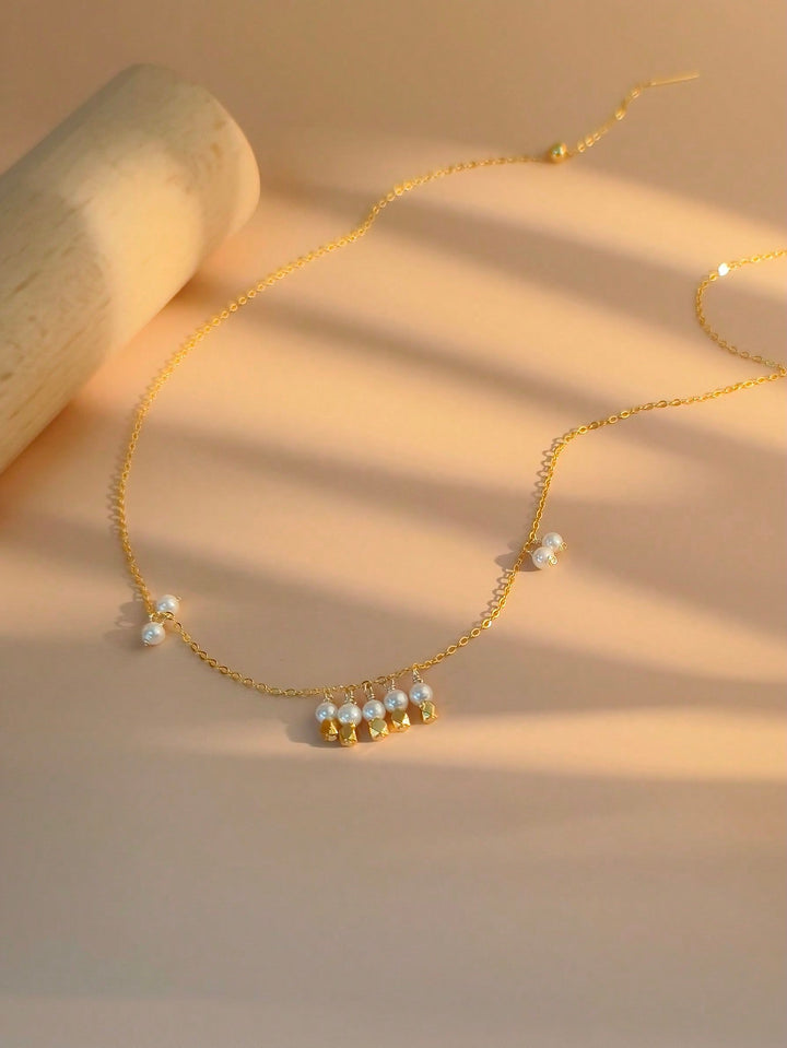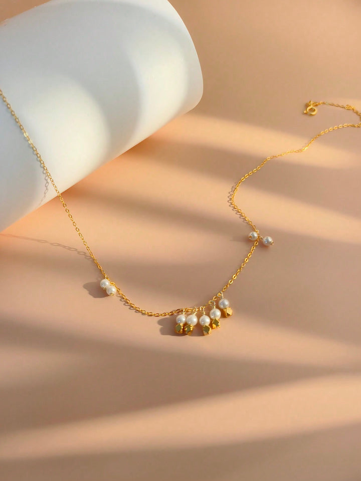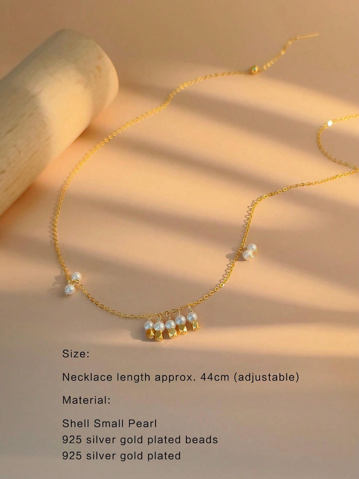 Shein - 1pc Exquisite And Elegant Pearl And Gold Plated 925 Sterling Silver Original Designer Necklace, A Personalized And Sophisticated Gift For Women Suitable For Parties And Daily Wear