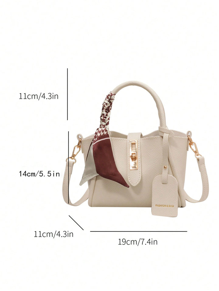 Shein - 1Pc Fashionable And Simple Pu Tote Bag With Lock Buckle, Suitable For Daily Use, Can Be Worn Over The Shoulder And Cross-Body, Or Carried By Hand, Comes With A Scarf