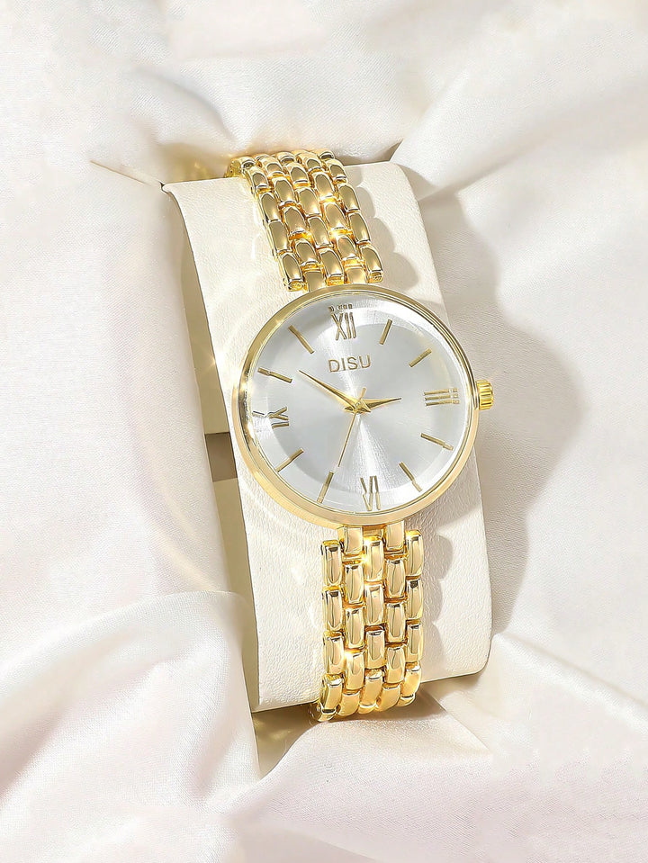 Shein - 1Pc Fashionable Minimalist Classic Women Quartz Watch Bracelet, Suitable For Daily Use - Gold