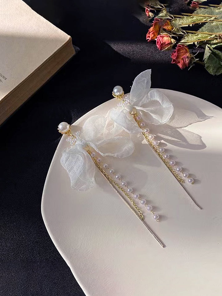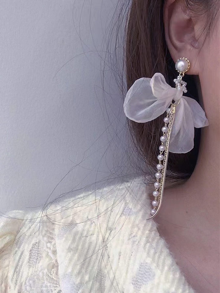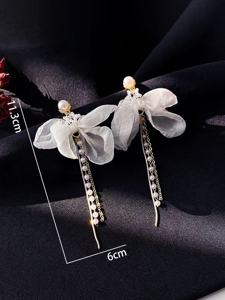 Shein - 1pc Faux Pearl & Bow Decor Drop Earrings Copper Jewelry