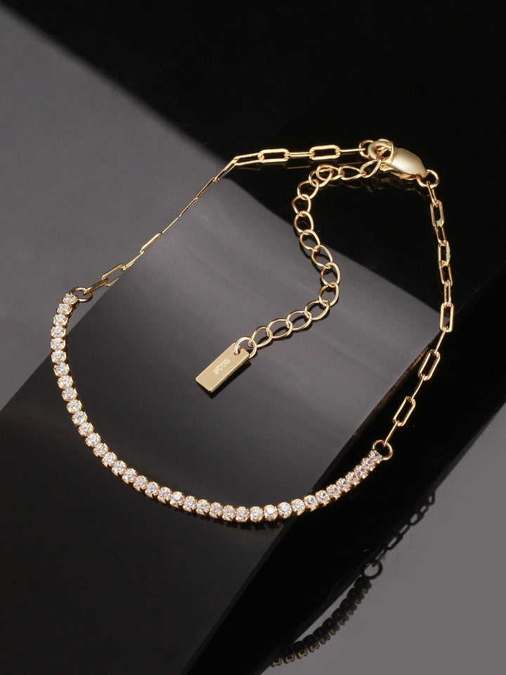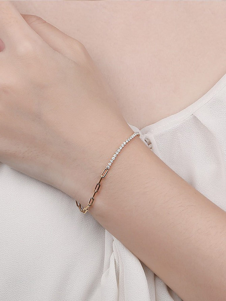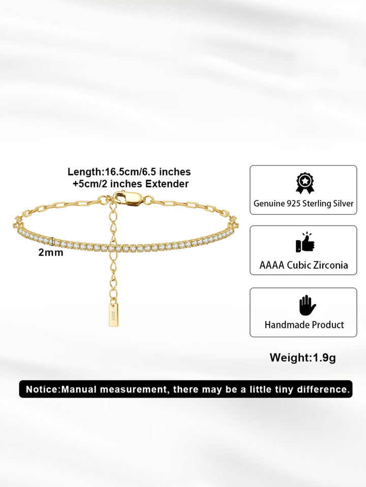 Shein - 1PC Genuine 925 Sterling Silver Half Tennis Bracelet Hand Chain 4A Grade Cubic Zirconia Gorgeous Women Jewelry Best Gift For Birthday