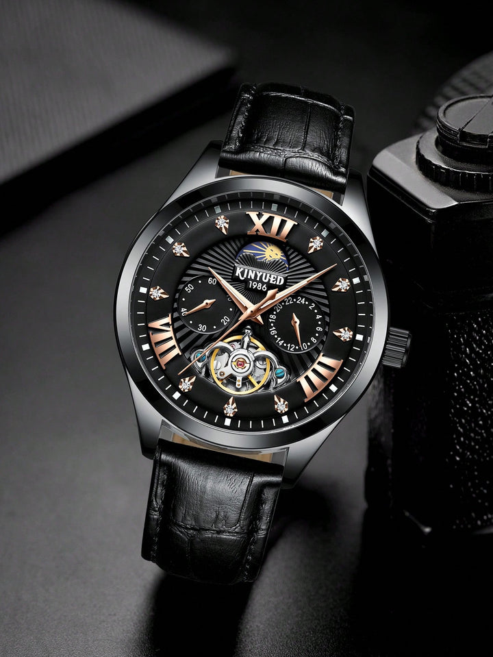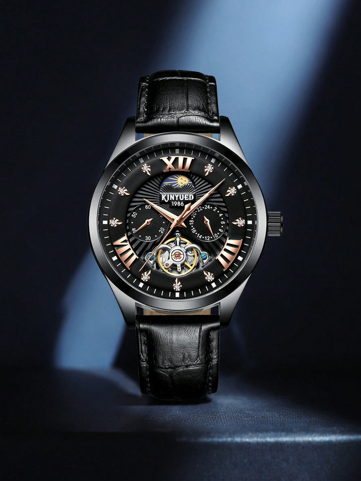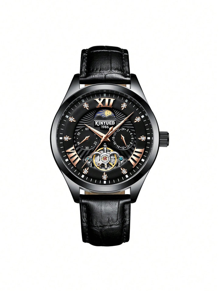Shein - 1Pc Men Stainless Steel Strap Fashion Business Style Luminous Date Multi-Function Display Classic Round Black Dial Full Automatic Mechanical Watch, Suitable For Daily Life