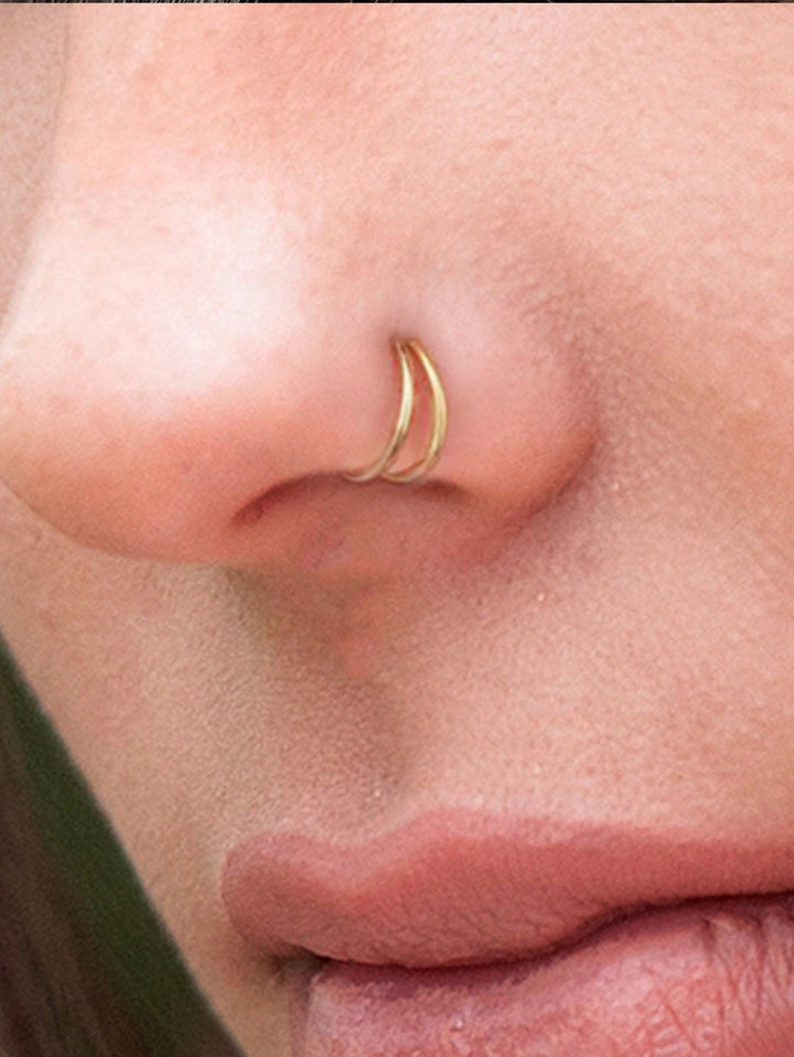 Shein - 1Pc Minimalist S925 Sterling Silver Nose Ring Piercing Trendy Unisex Daily 18k Gold Plated Fine Jewelry Gift