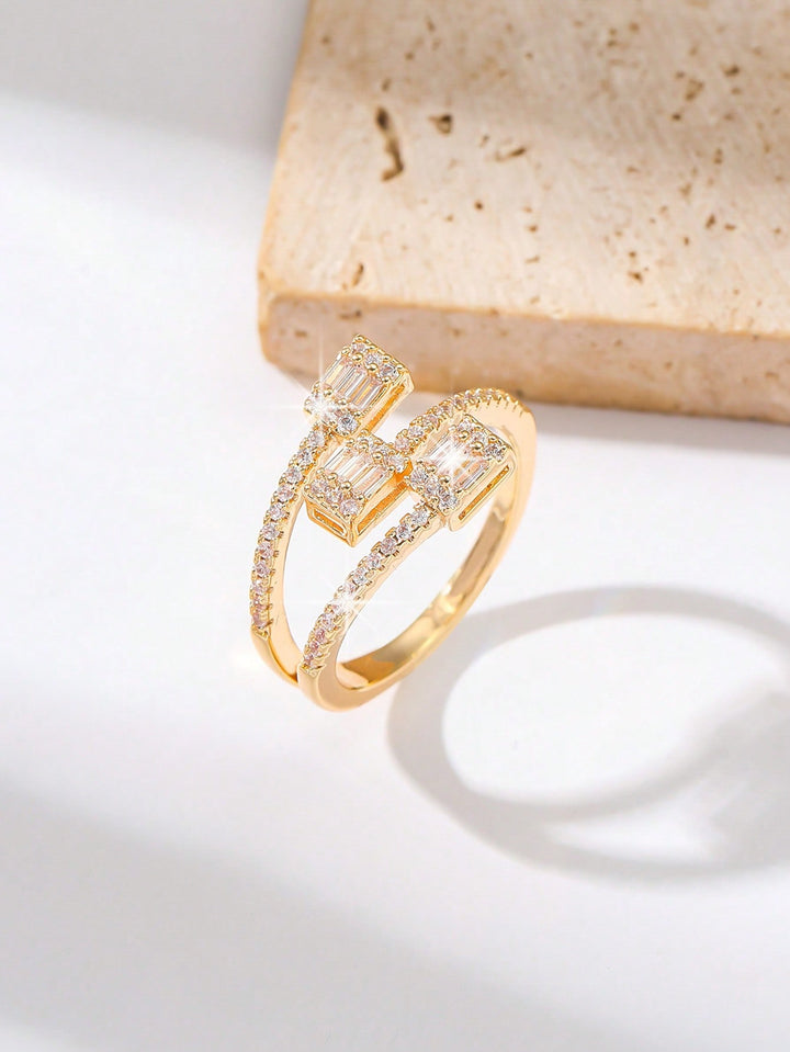 Shein - 1Pc Multifaceted Micro-Inlaid Cubic Zirconia Ring