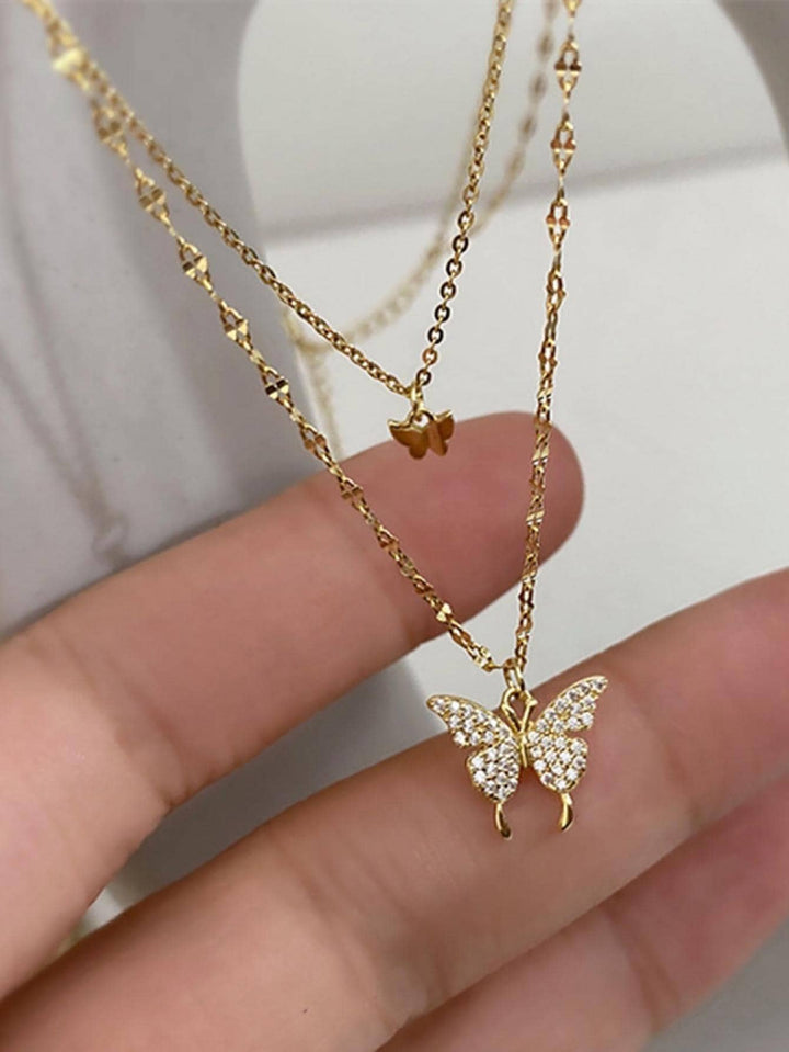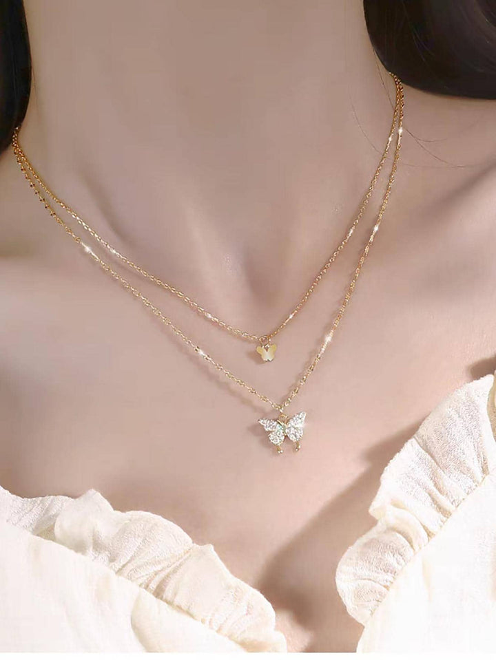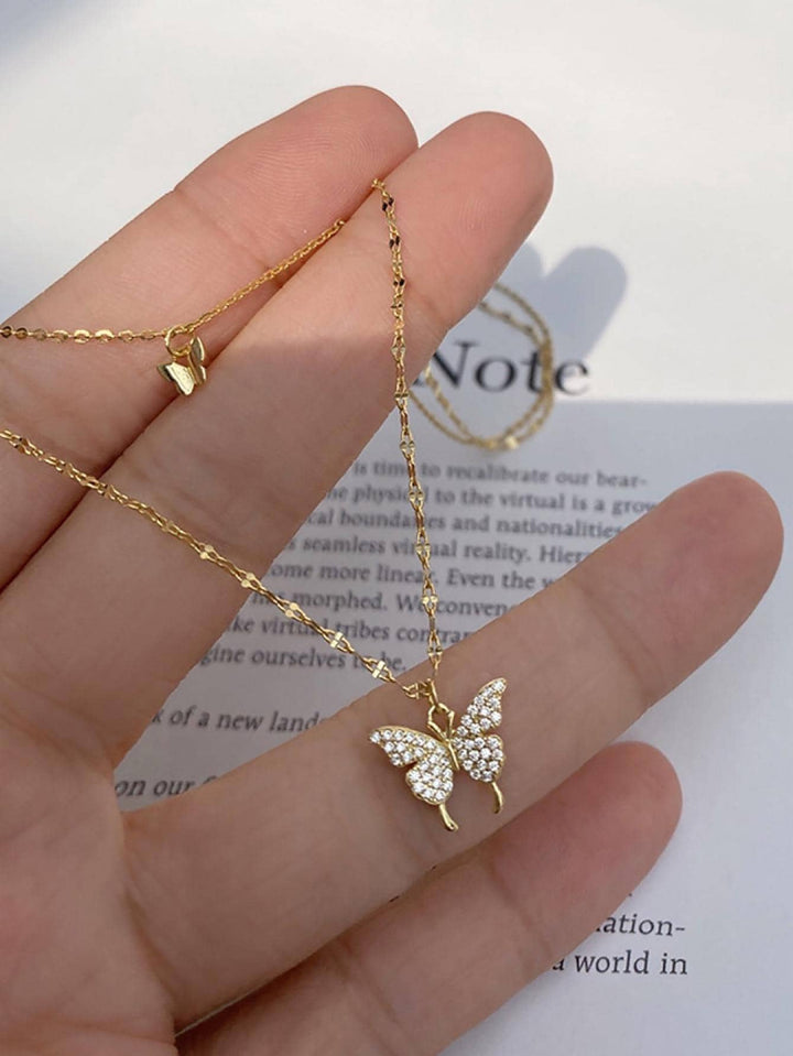 Shein - 1pc Niche & Luxurious S925 Sterling Silver Double-layered Butterfly Choker Necklace (40cm) For Women As Party Gift