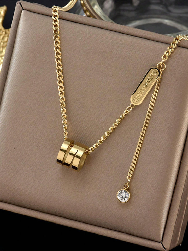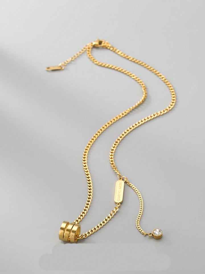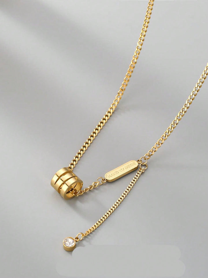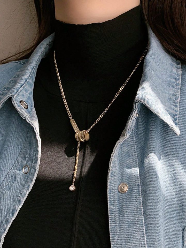 Shein - 1Pc Stainless Steel Fashionable New European And American Style Necklace For Women, Korean Simple Wild Forest Fringe Chain For Collarbone