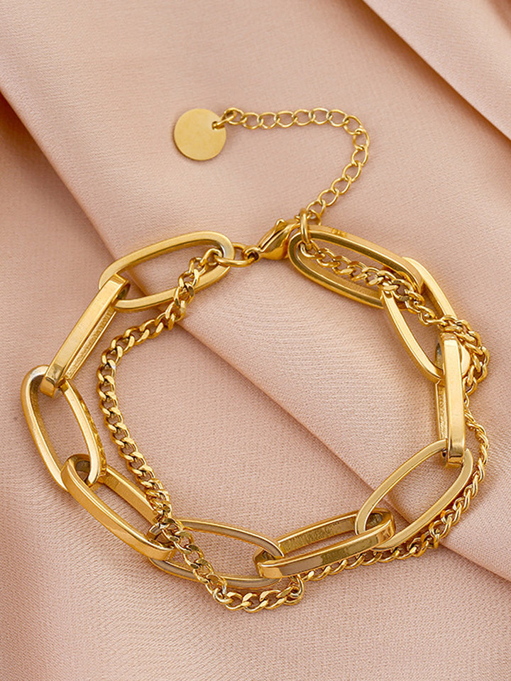 Shein - 1pc Stainless Steel Women's Double Layer Chain Bracelet For Party, Date And Office