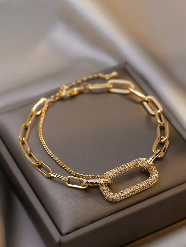 Shein - 1pc Trendy Geometric Design Water Rhinestone Inlaid Link Chain Bracelet