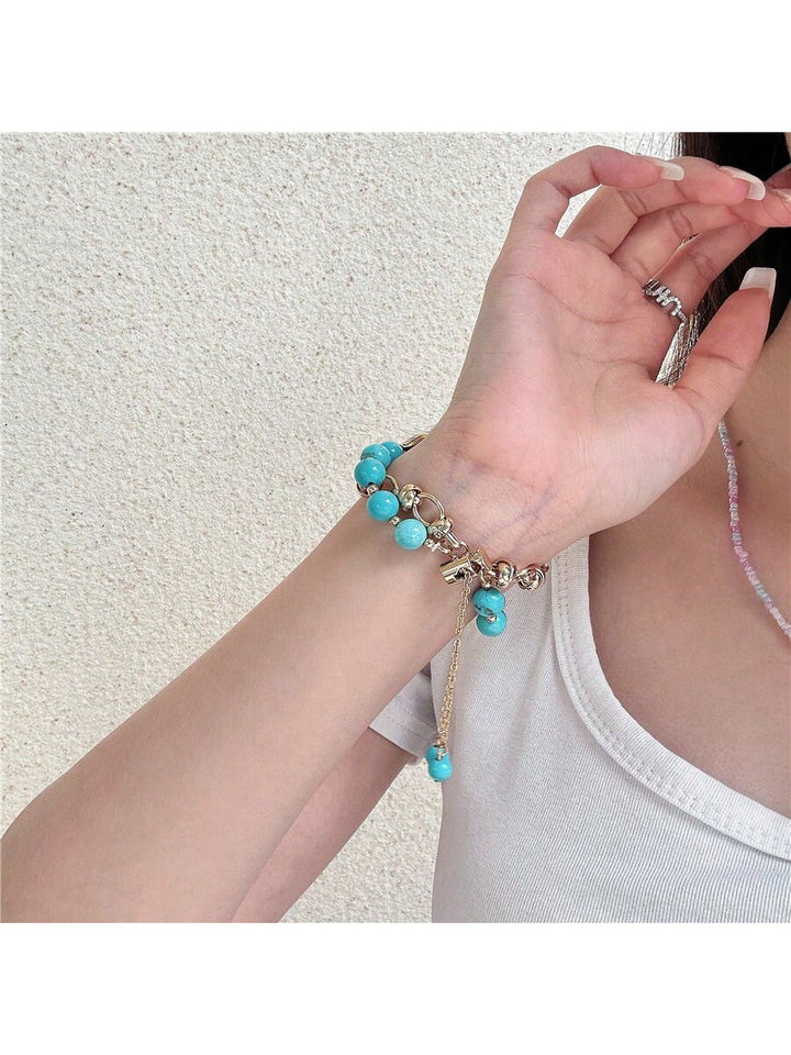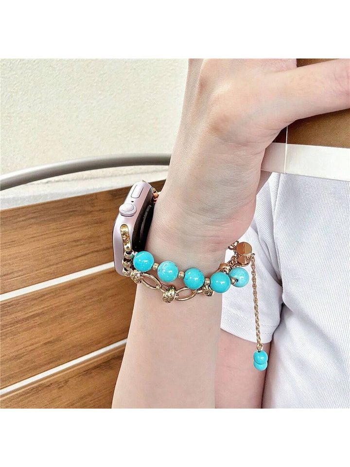 Shein - 1Pc Women Fashion Adjustable Beaded Bracelet Strap Compatible With Apple Watch Band 38/40/41/42/44/45/49Mm, Compatible With Apple Watch Series Ultra 9/8/7/6/5/4/3/2/1/Se
