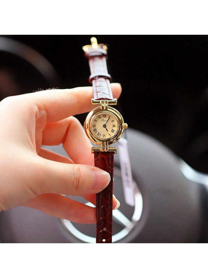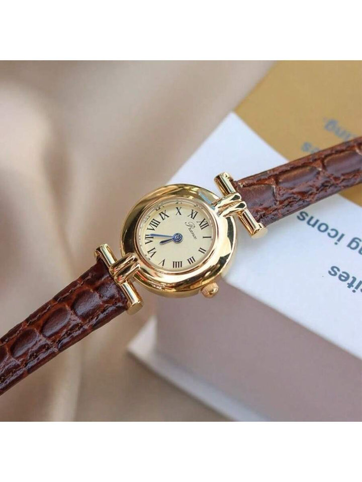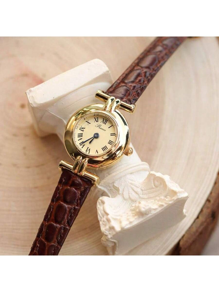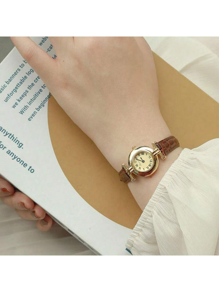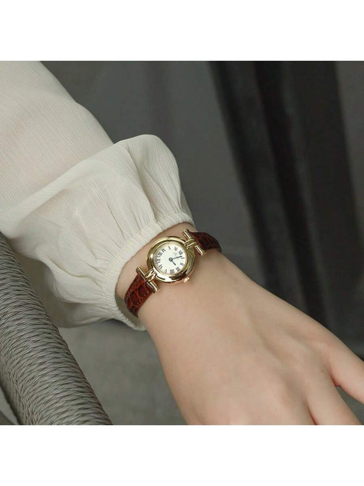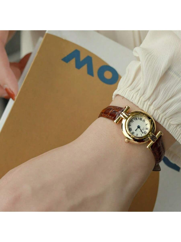 Shein - 1Pc Women'S Retro Roman Scale Leather Strap Wristwatch