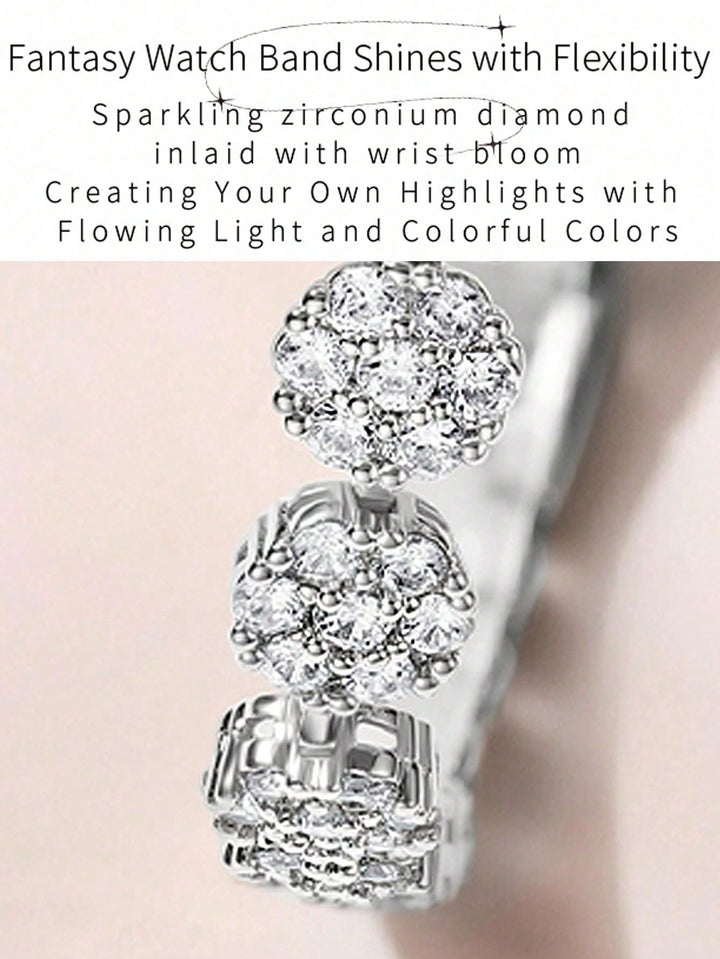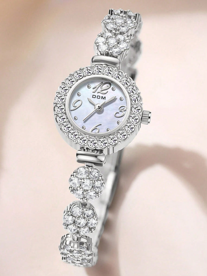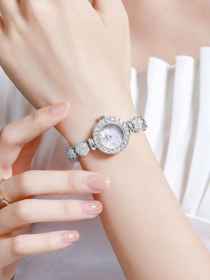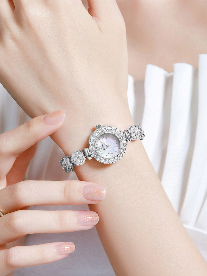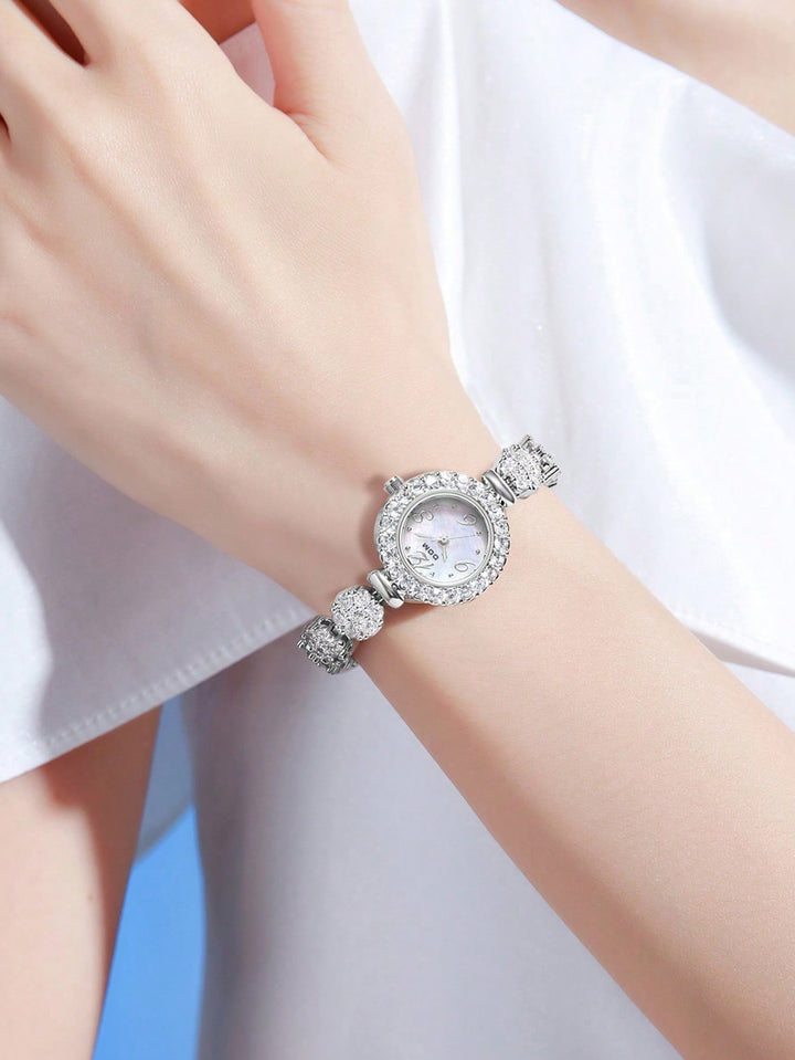Shein - 1pc Women's Silver Tone Artificial Diamond Decorated Quartz Watch With Mop Dial And Bracelet Chain, Elegant And Delicate Design For Daily Wear
