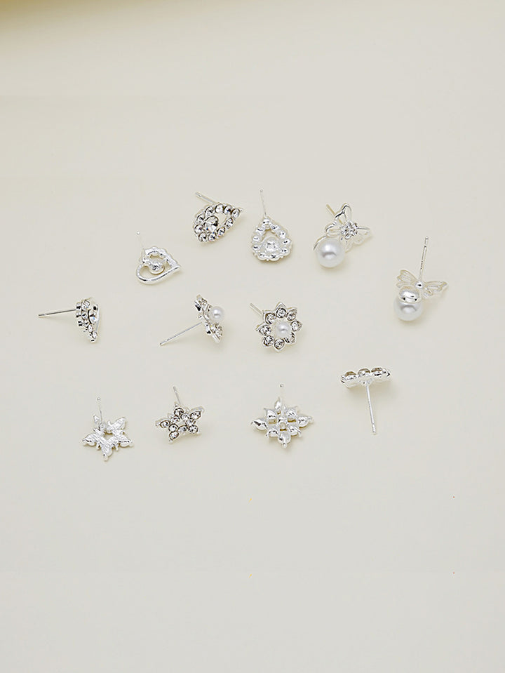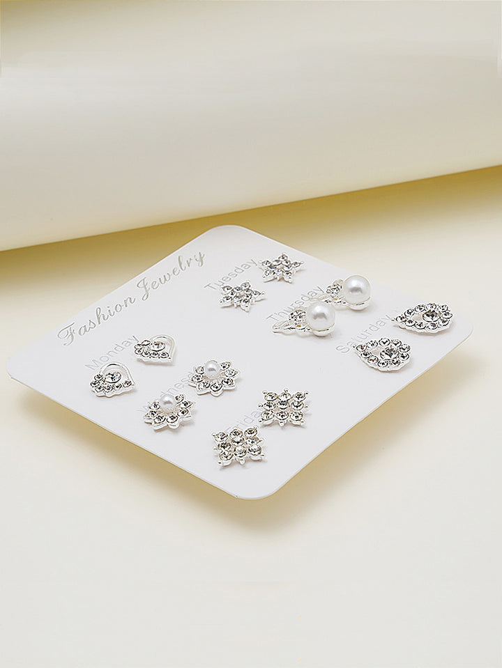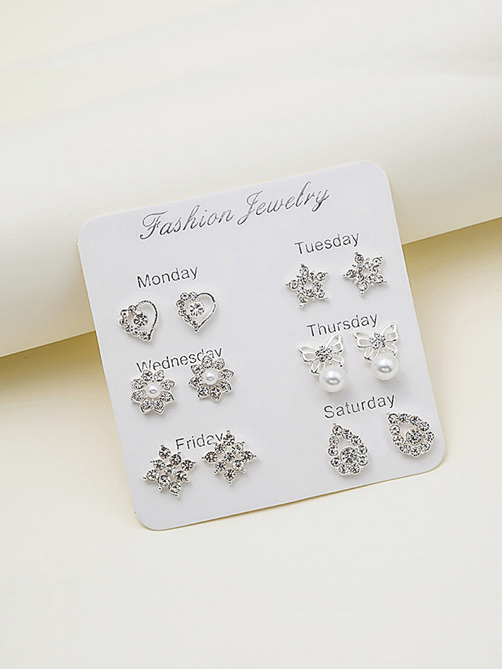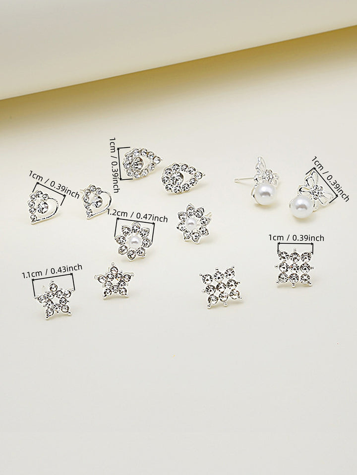 Shein - 1set 6pairs/12pcs Stainless Steel Needle & Cubic Zirconia Stud Earrings, Wear Different Pair Every Day Of The Week