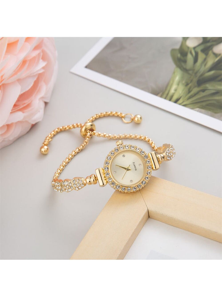 Shein - 2023 New Fashion Women's Bracelet Watch, Round Case, Stainless Steel Strap, Quartz Watch With Small Dial And Diamond Detail, Ideal Gift For Girlfriend