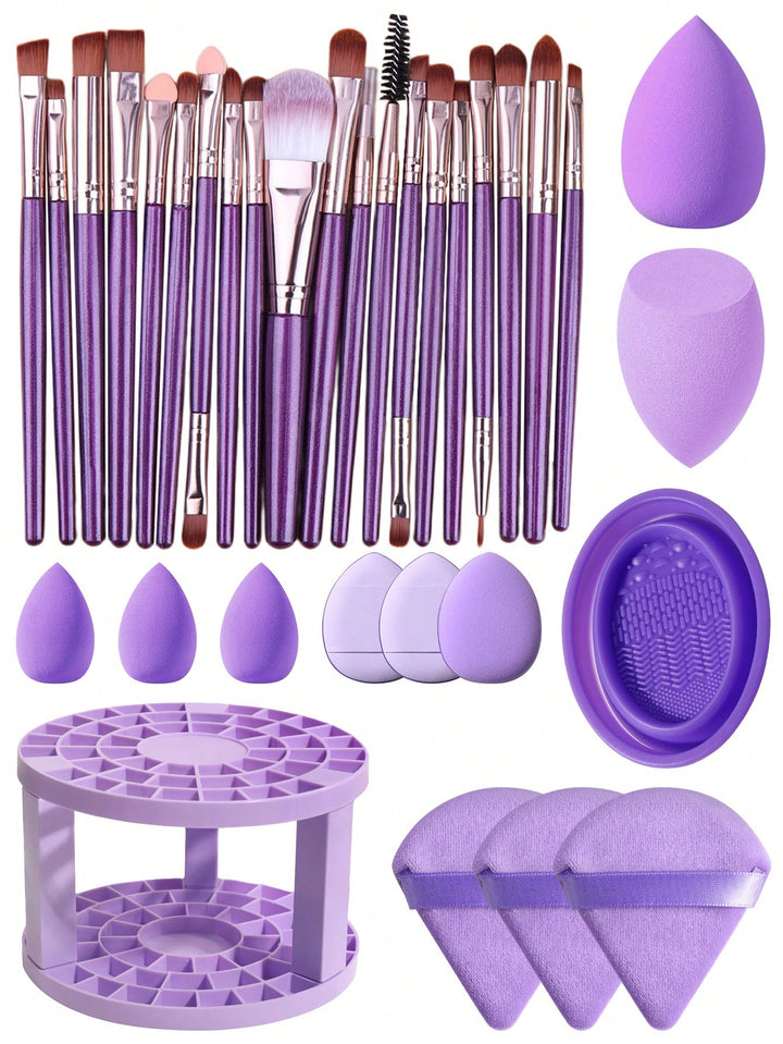 Shein - 20pcs Makeup Brush Set &1pc Makeup Brush Storage Stand 6PCS Makeup Puff 5PCS Makeup Sponge For Face Make-Up 1PCS Makeup Brush Cleaning Tools For Cleaning Makeup Brush