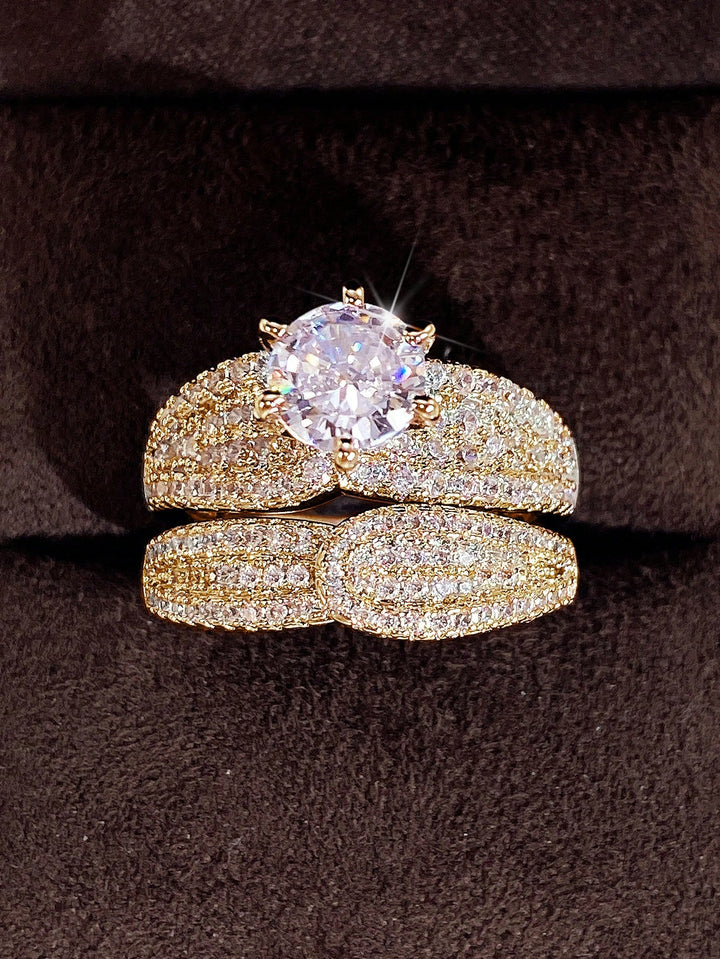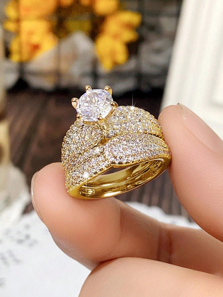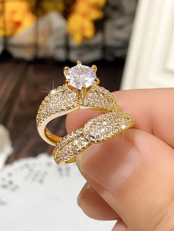 Shein - 2Pc/Set Gorgeous Cubic Zirconia Ring For Women For Valentine'S Day Gift Wedding Anniversary Party Jewelry