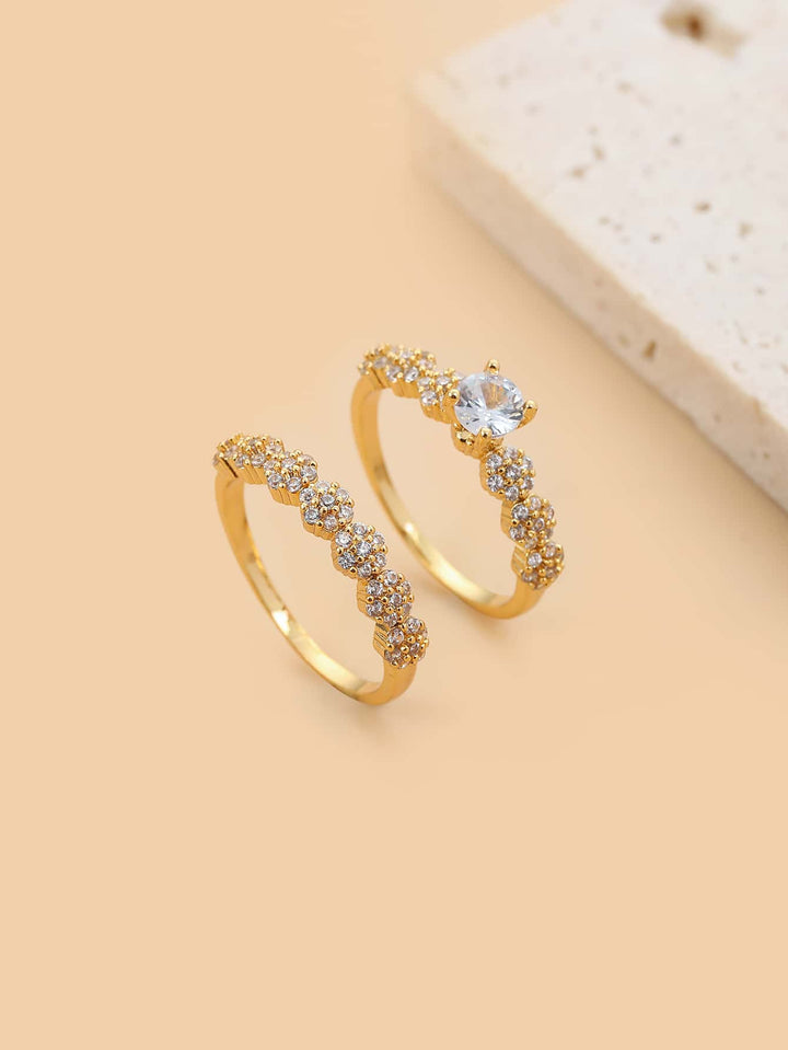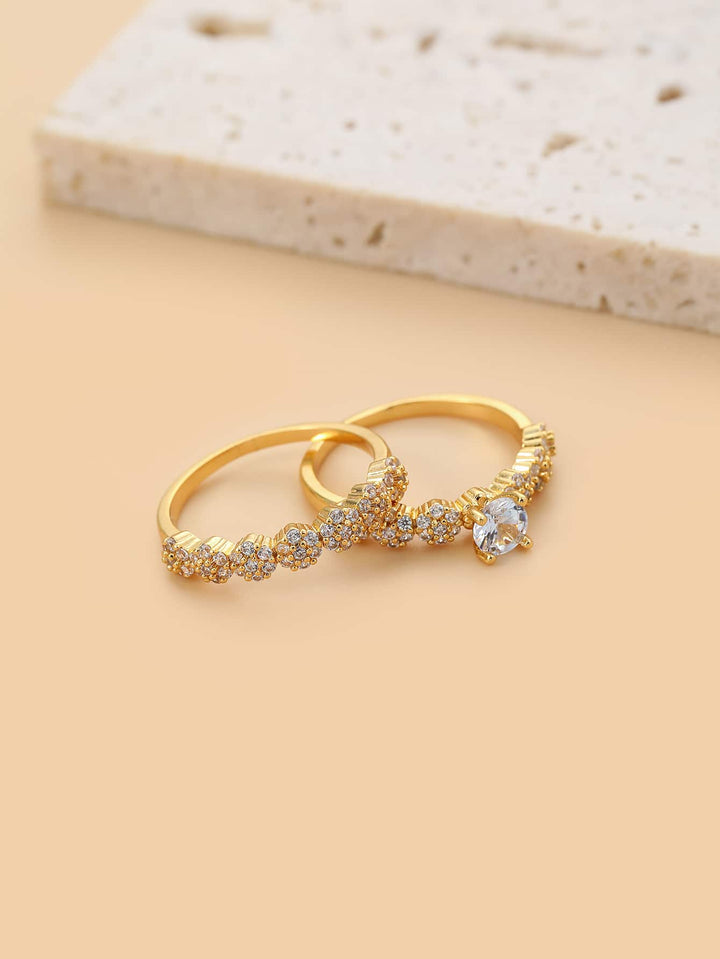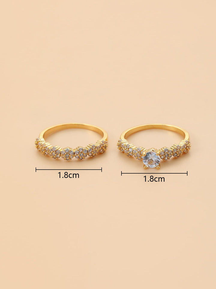 Shein - 2pcs Cubic Zirconia Decor Ring