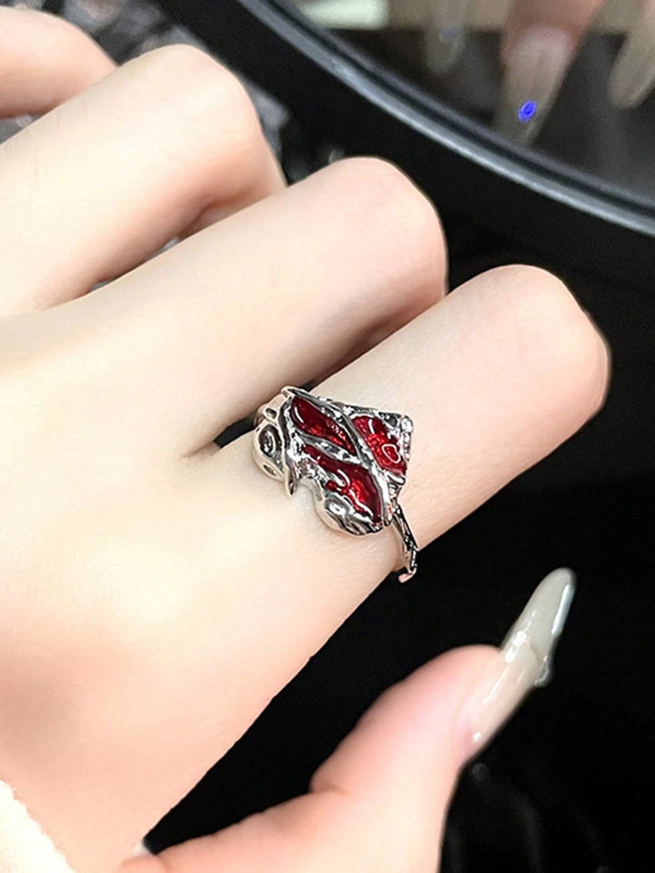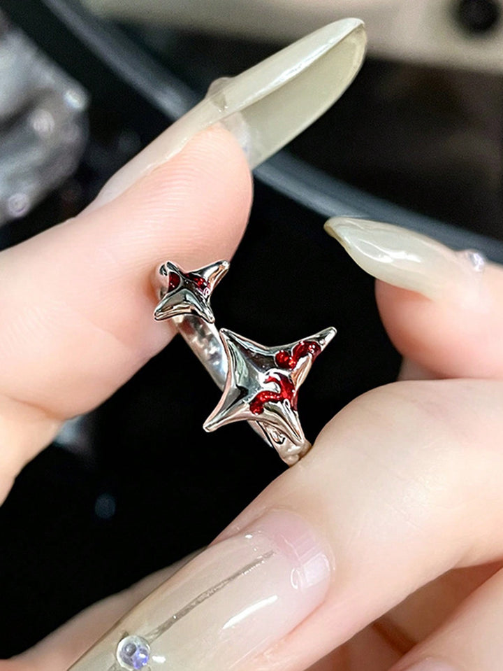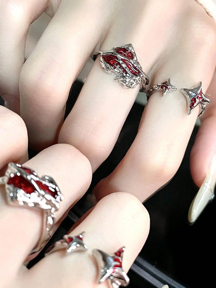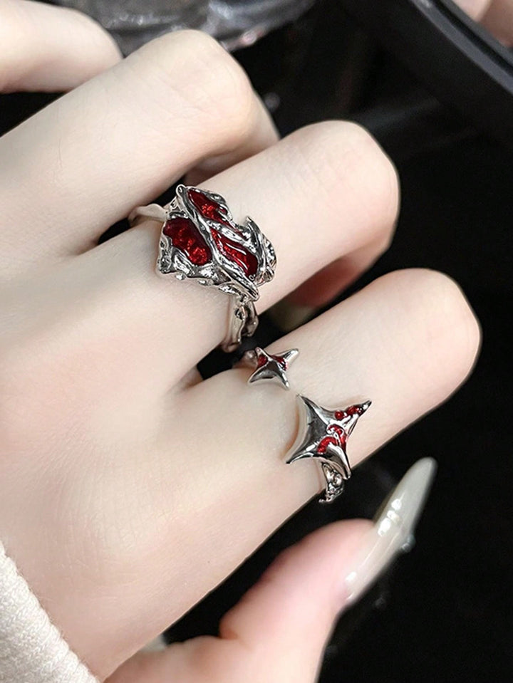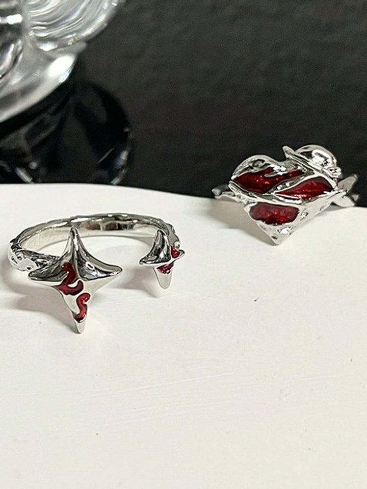 Shein - 2Pcs European And American Style Personality Alloy Crisscross Heart Shaped Red Cubic Zirconia Thorn Open Ring For Women Party Gift
