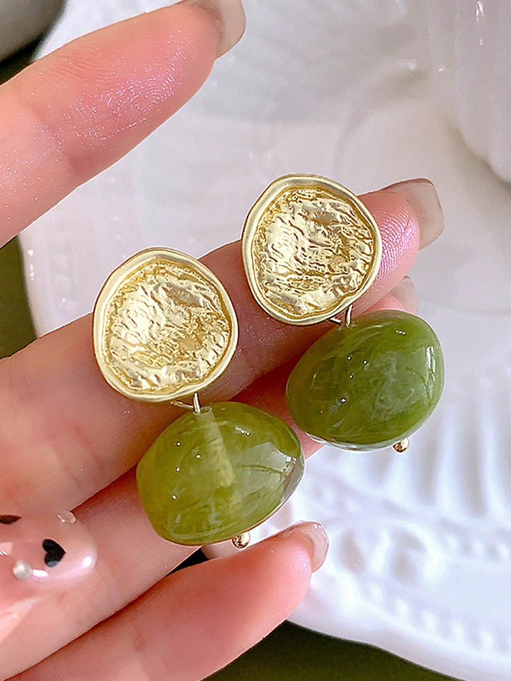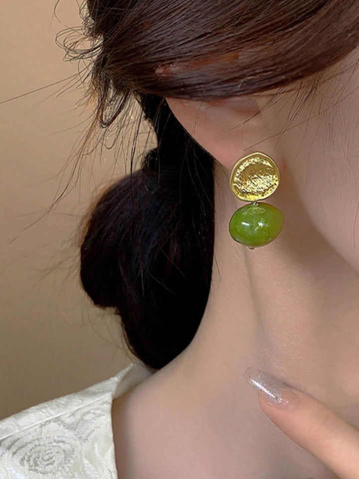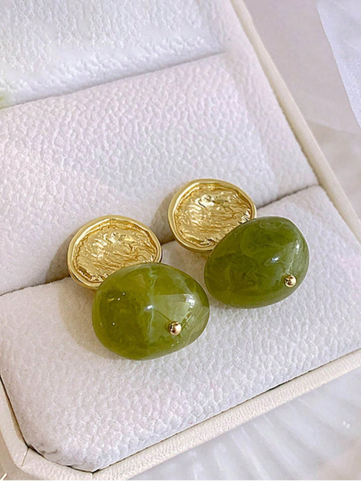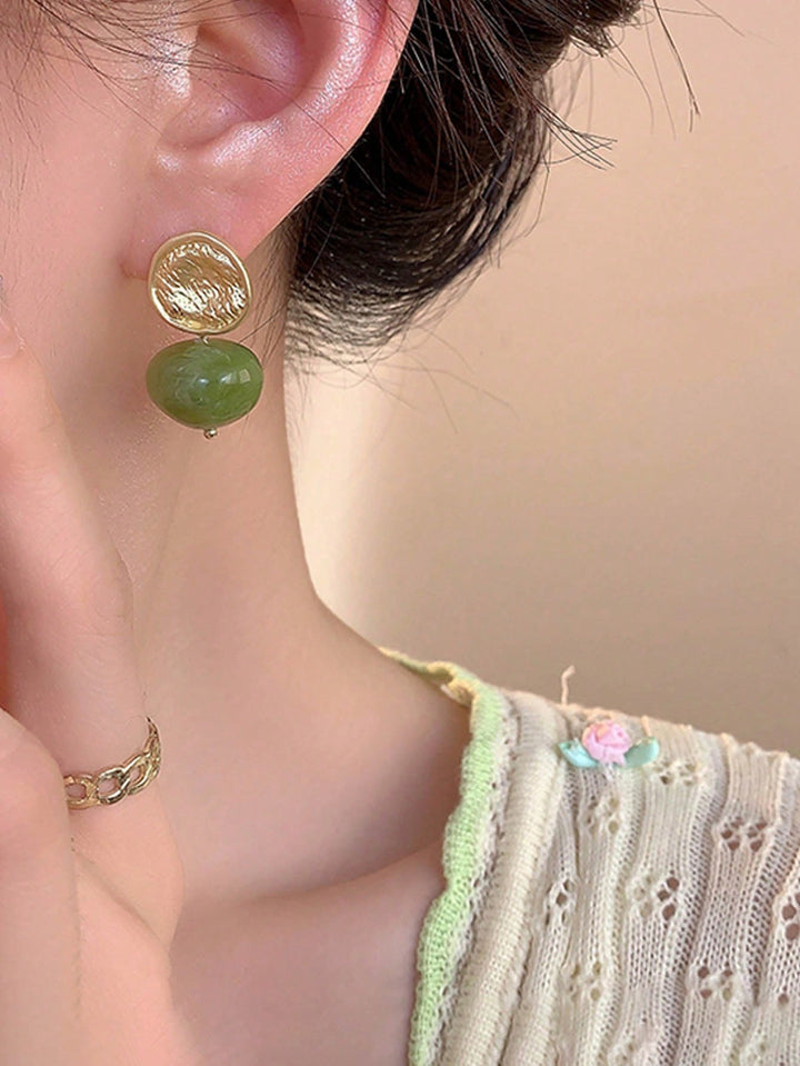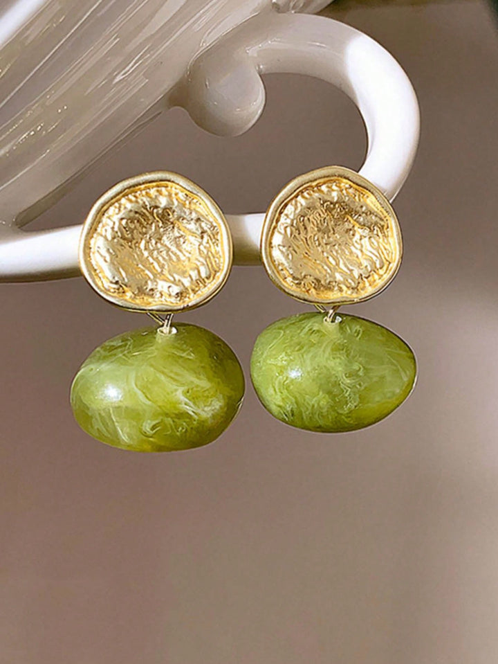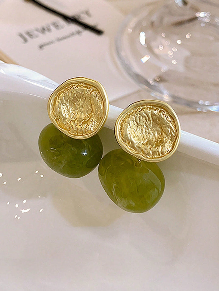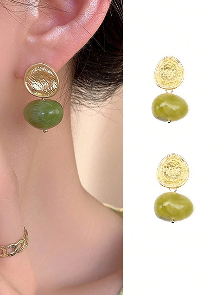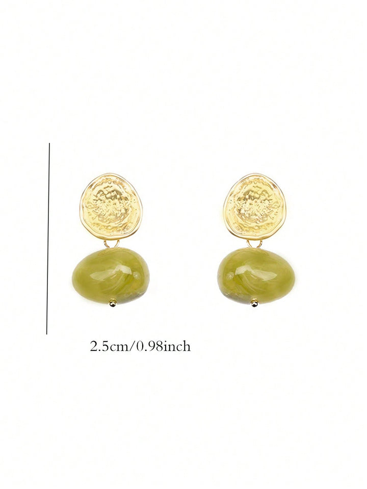 Shein - 2pcs Green Personality Metallic Stud Earring, Minimalist In Style, Suitable For Ladies' Daily Wear