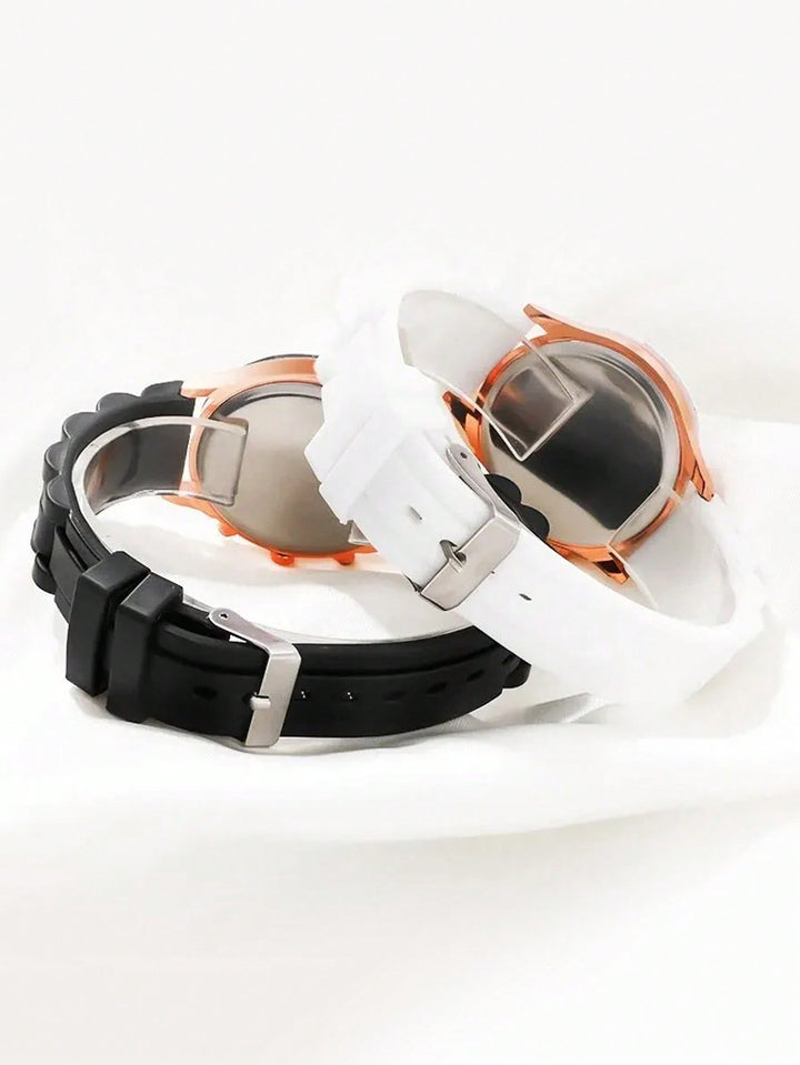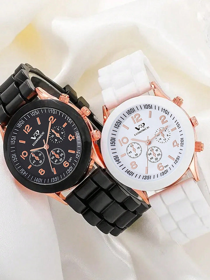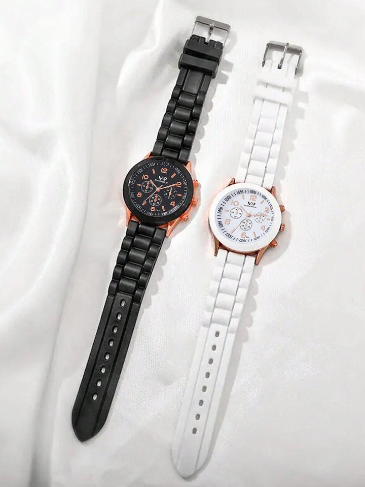 Shein - 2pcs/Set Couple Fashion Pointer Type Quartz Wristwatch With Silicone Strap