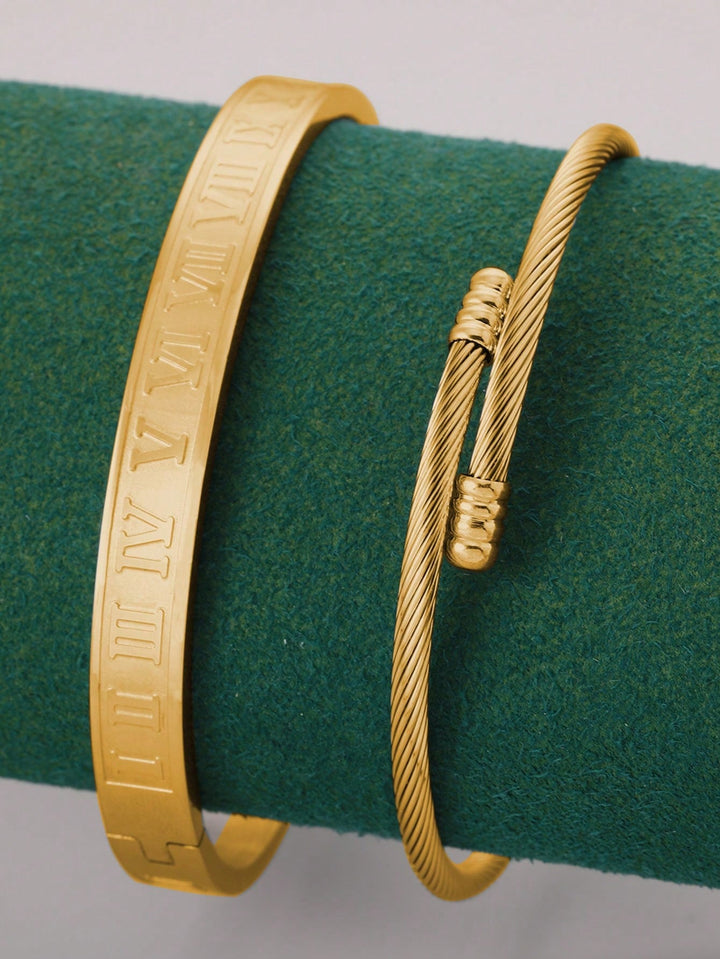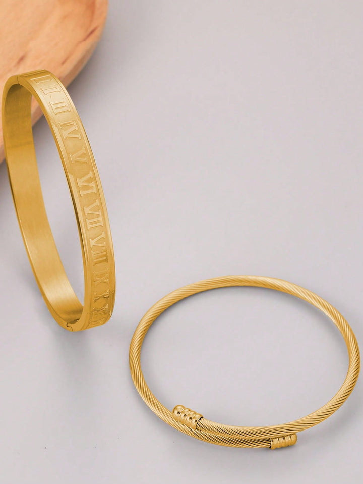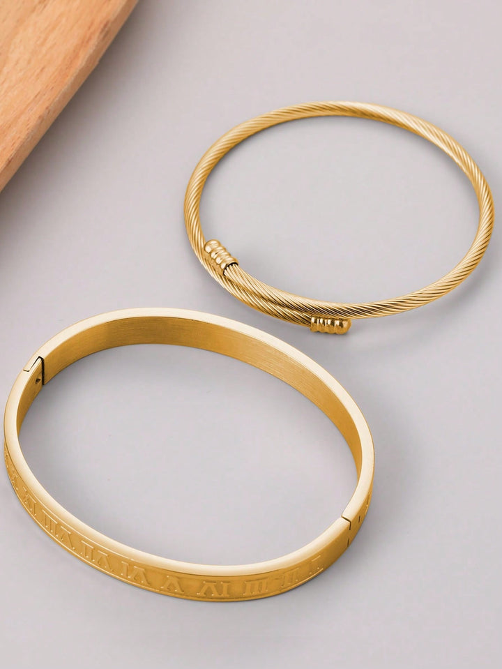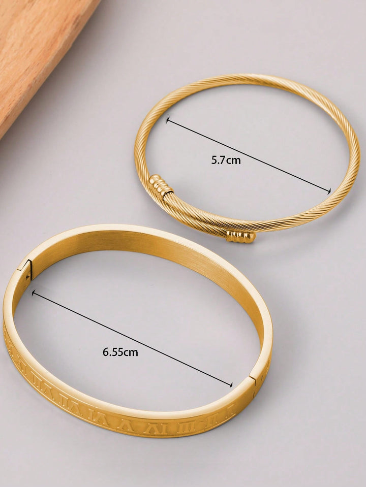Shein - 2Pcs Simple & Elegant Stainless Steel Bracelet For Women