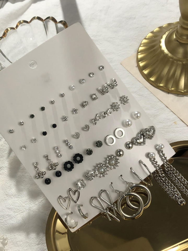 Shein - 30pairs/set Faux Pearl & Flower Decor Earrings