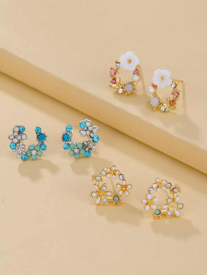 Shein - 3pairs Rhinestone & Flower Decor Stud Earrings