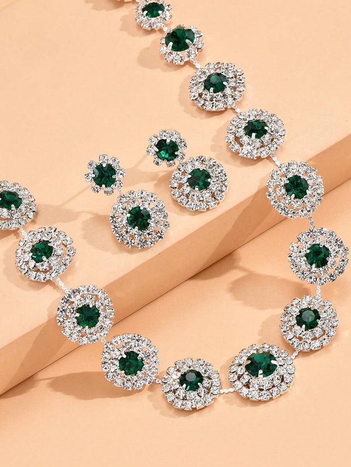 Shein - 3Pcs Deluxe Jewelry Set Wedding Party Women'S Dress Water Rhinestone Decorative Jewelry Fashion Shiny Necklace And Earring Set Prom Apparel Accessories (2 Pairs Of Earrings And 1 Necklace)