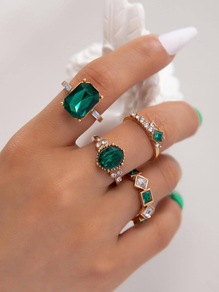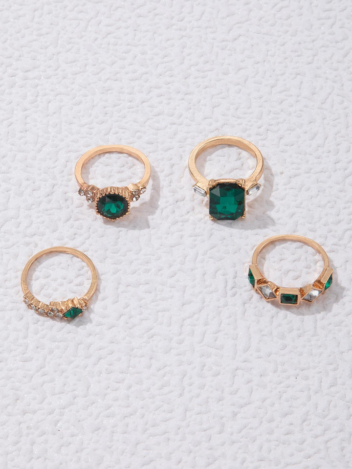 Shein - 4Pcs/Set Glamorous Zinc Alloy Rhinestone Geometric Decor Ring For Women For Girlfriend'S Gift